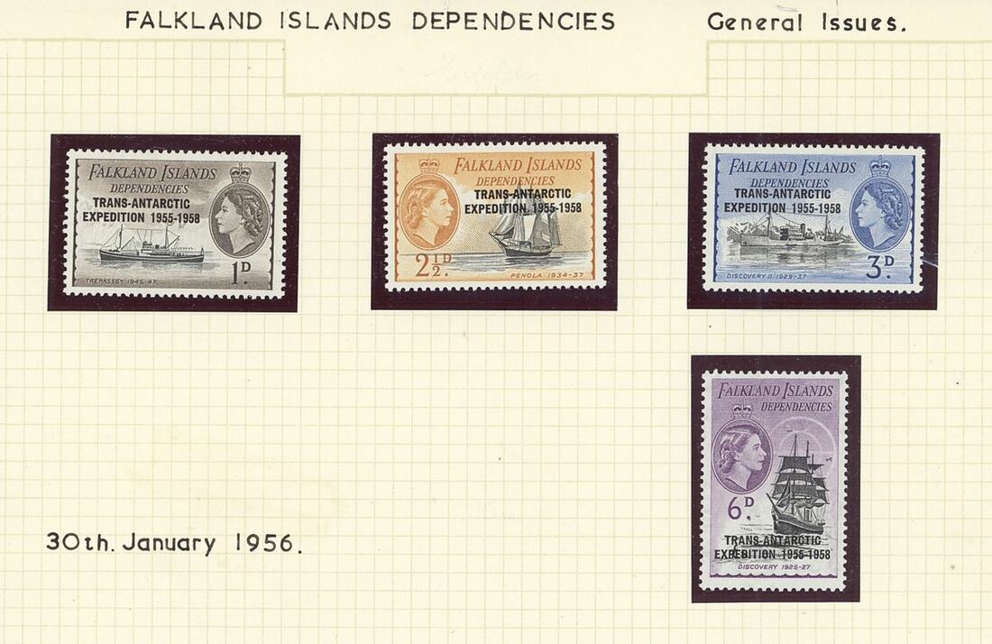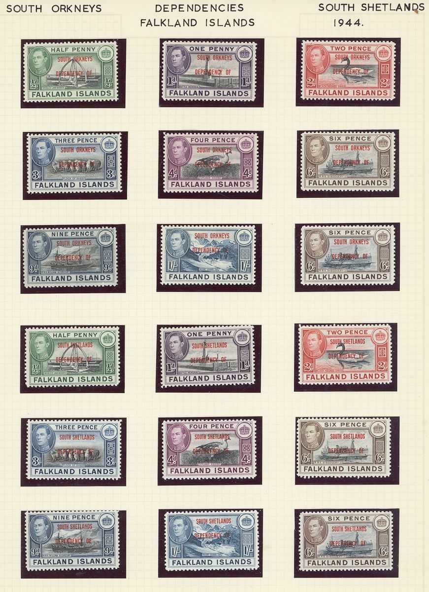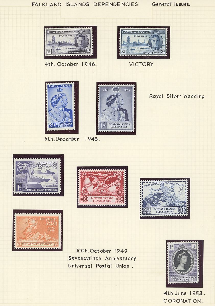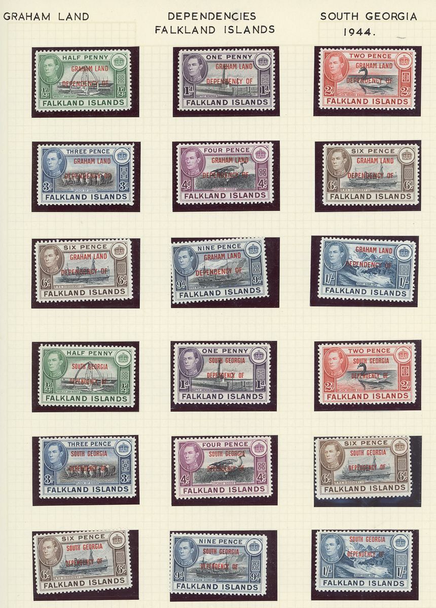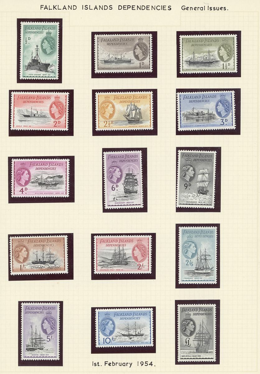 Collection on pages (95), including South Georgia 1912-23 3/- green on piece, 1946-49 6d. and 1/-"Poke" varieties, 1954-62 ½d. to £1, etc., chiefly fine