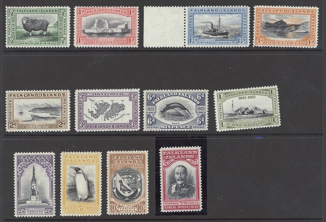 1933 Centenary ½d. to £1, some values including 10/- and £1 very lightly mounted, others unmounted mint, lower values very slightly gum toned otherwise fine and rare. Brandon Certificate for £1 (2008). S.G. 127-138, £4,250