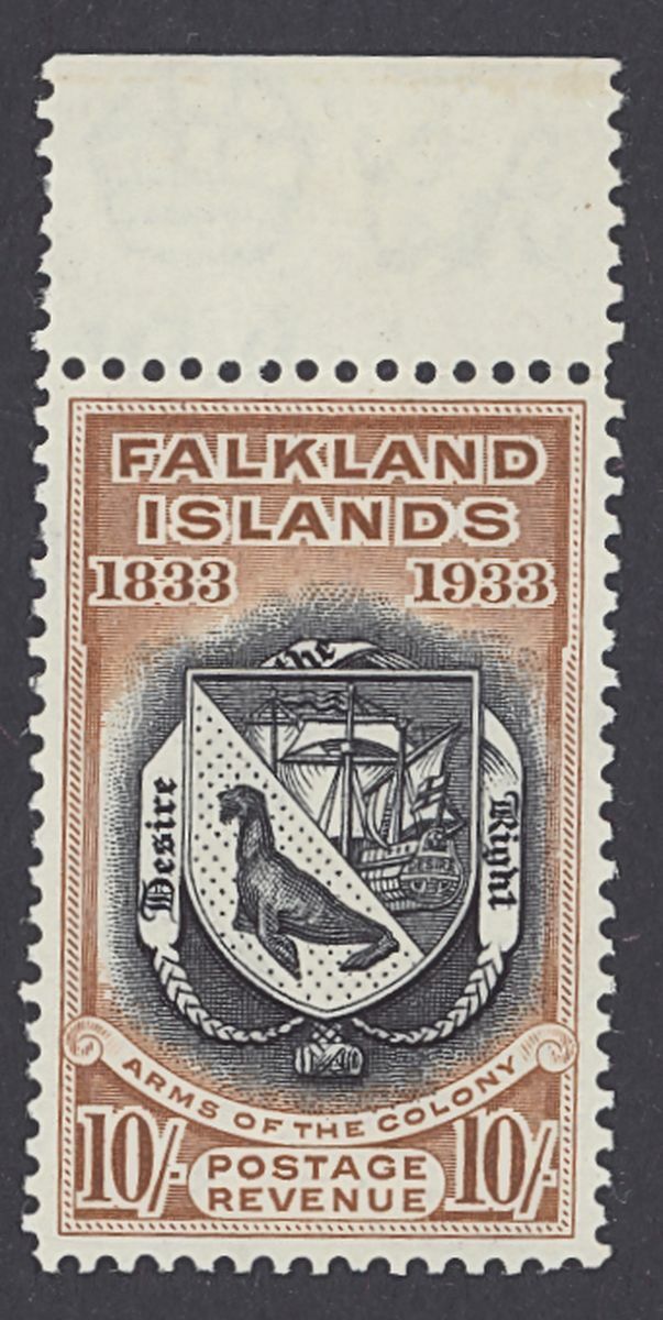 1933 Centenary 10/- black and chestnut, unmounted mint from the top of the sheet (hinged in the margin); fine. S.G. 137, £850