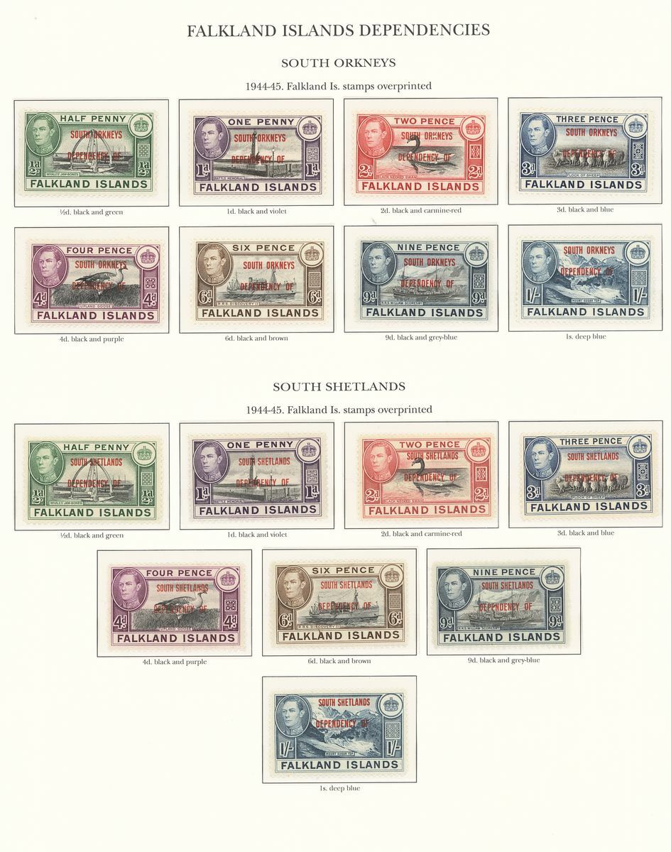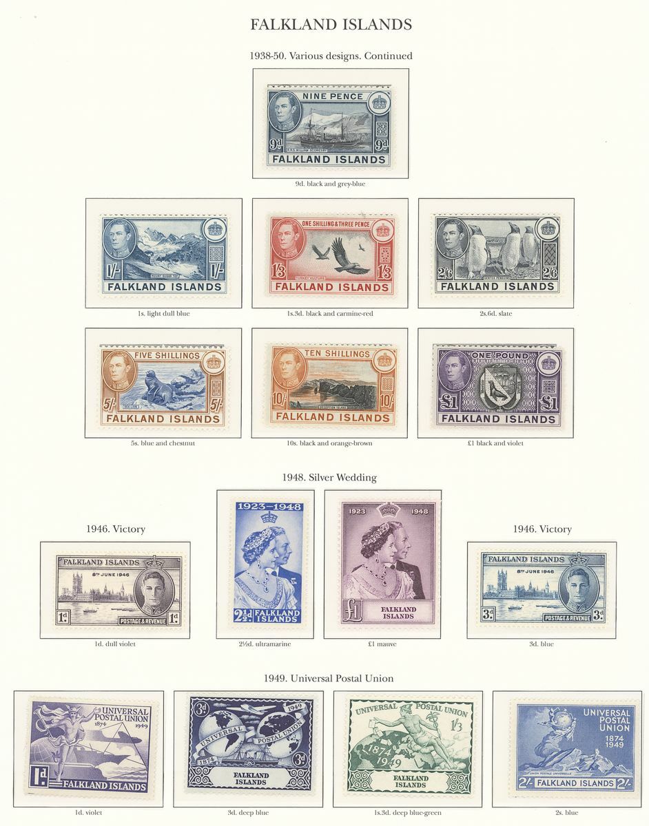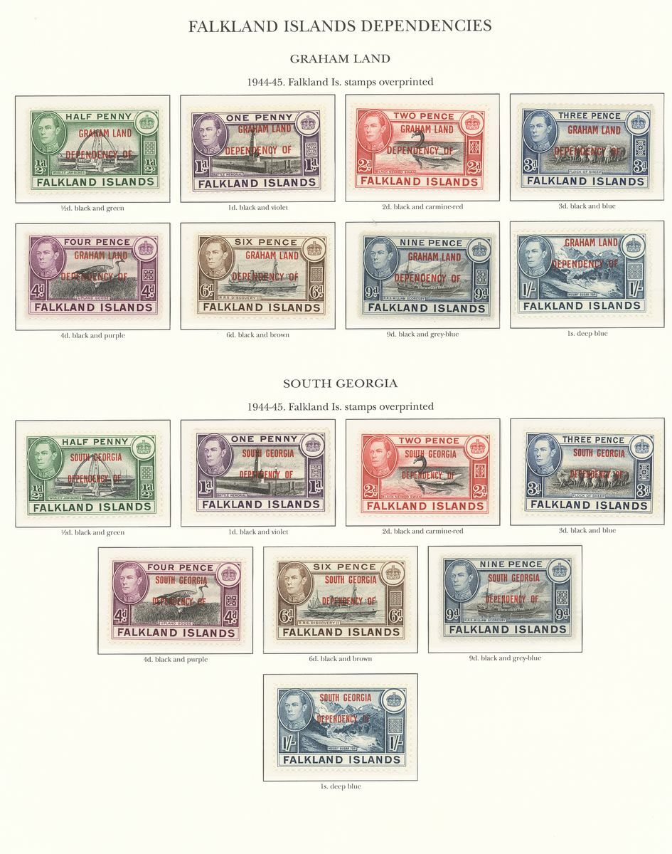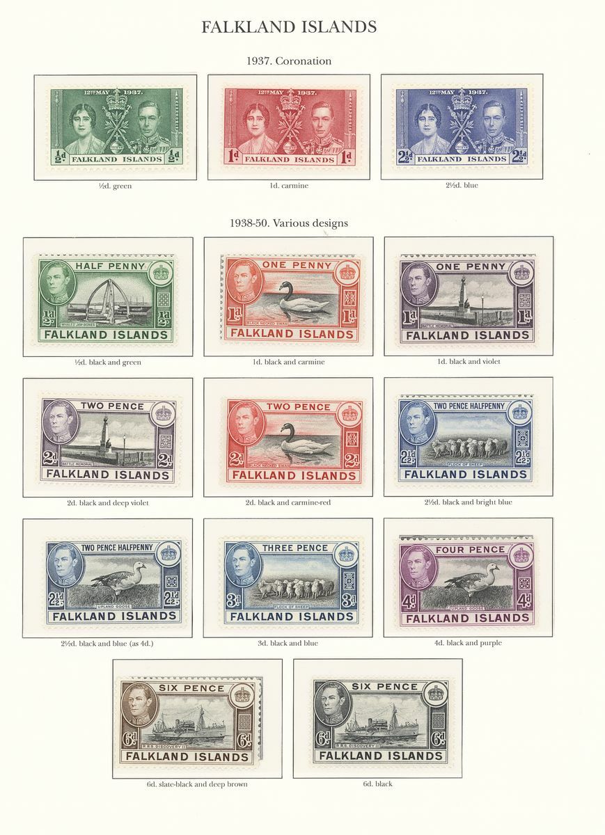 1937-52 mostly unmounted mint collection arranged on seven pre-printed KGVI Stanley Gibbons album pages, complete for all the spaces comprising Falkland Islands and Dependencies, generally fine. S.G. £800+
