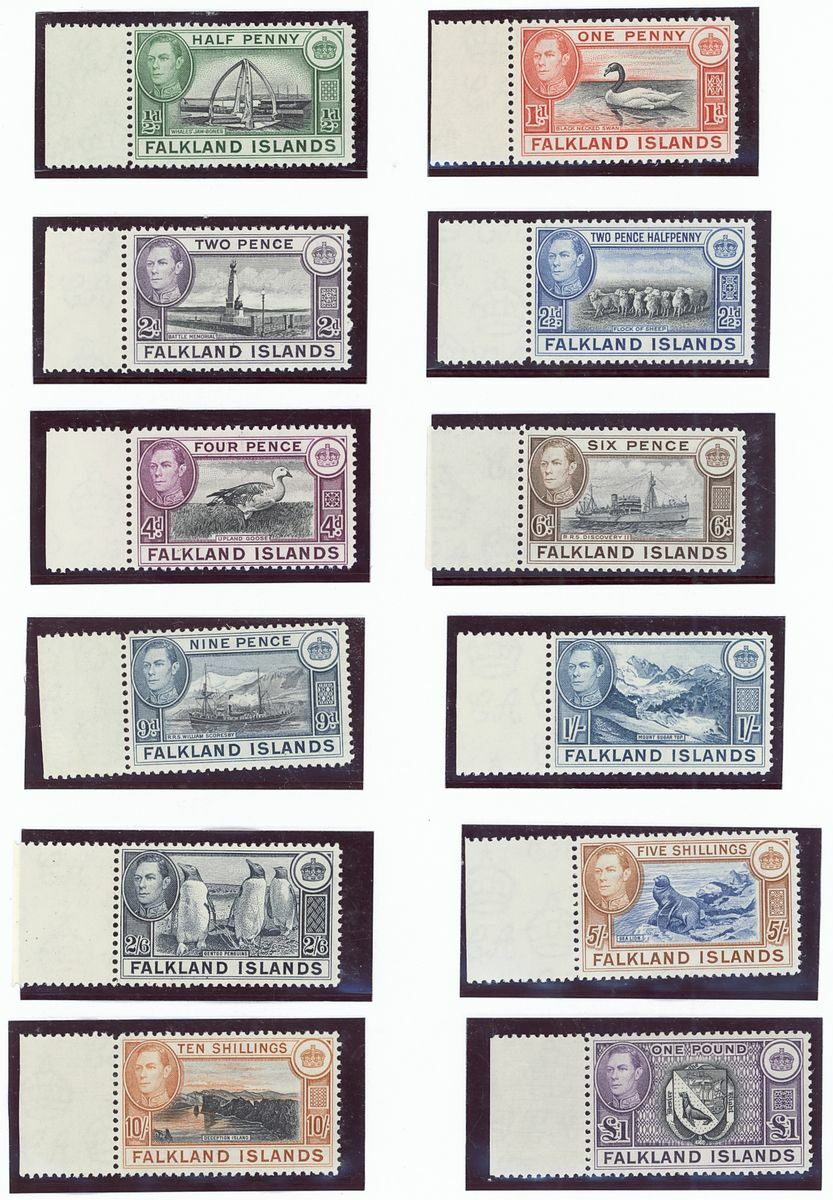 The 1937 first printing ½d. to £1, set of twelve, each from the left of the sheet, unmounted mint, some gum wrinkles, the 9d. hinged in the margin; fine. Btwn. S.G. 146 and 163