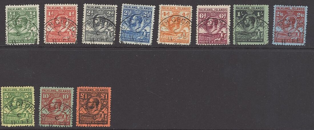 1929-37 Whale and Penguin set, each with part South Georgia c.d.s., fine and scarce. S.G. Z43-Z53, £2,000+