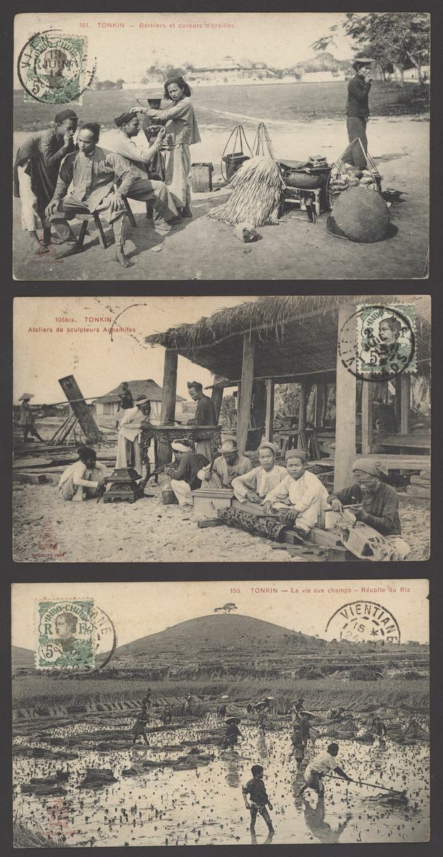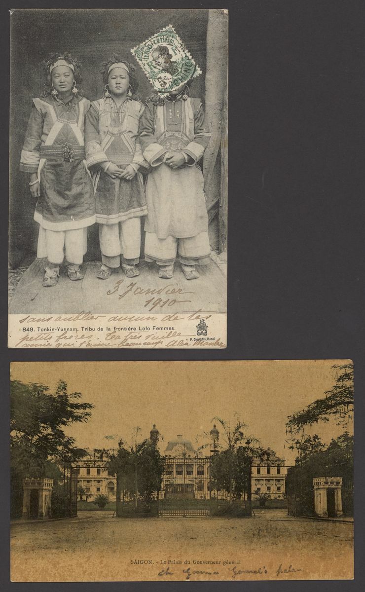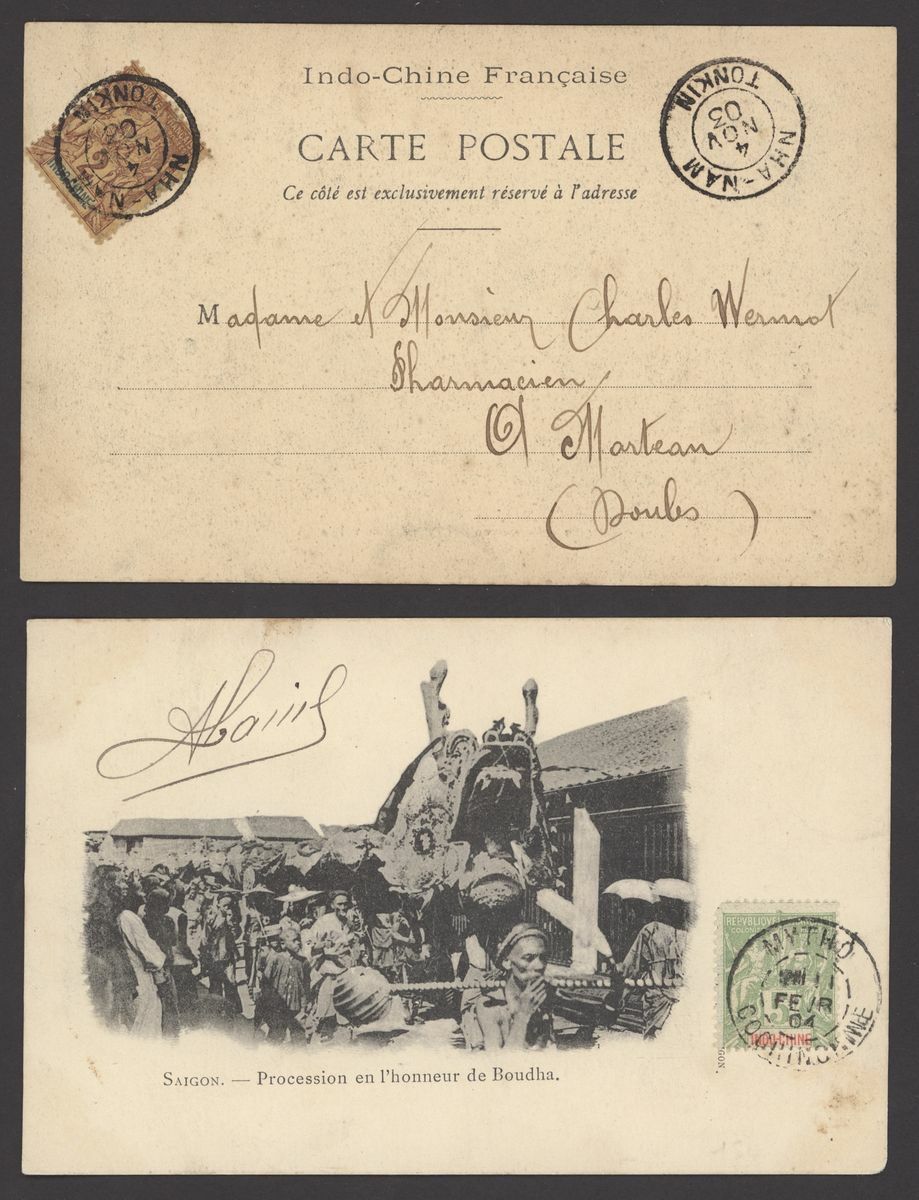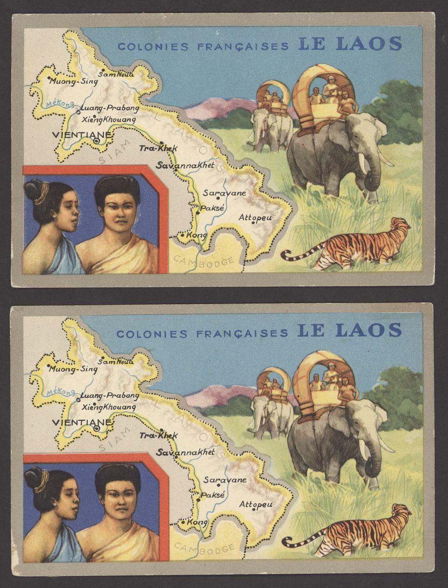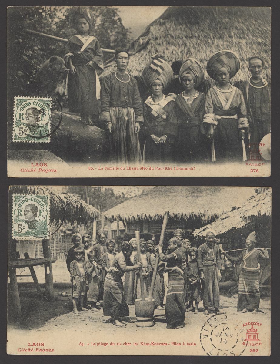 Selection of 50 items, including 1905 10c. picture postcard additionally franked 5c. with Houei Sai/Laos cancellation, 1910 envelope franked Indian Woman 25c. with PnomPenh cancellation, 1940 pictorial Air Mail envelope to Amoy with Hong Kong Censor strip, 1941 Air Mail envelope to France franked 30c. (3), $1 with Phnom Penh cancellations and Hong Kong Censor strip, a good variety of frankings and cancellations; mixed condition