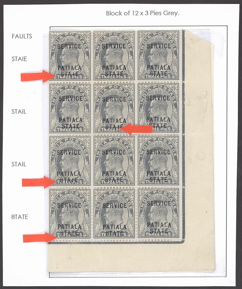 1903-12 3p. lower right corner block of twelve (3x4) unmounted mint showing few occasional overprint varieties, fine. S.G. O22