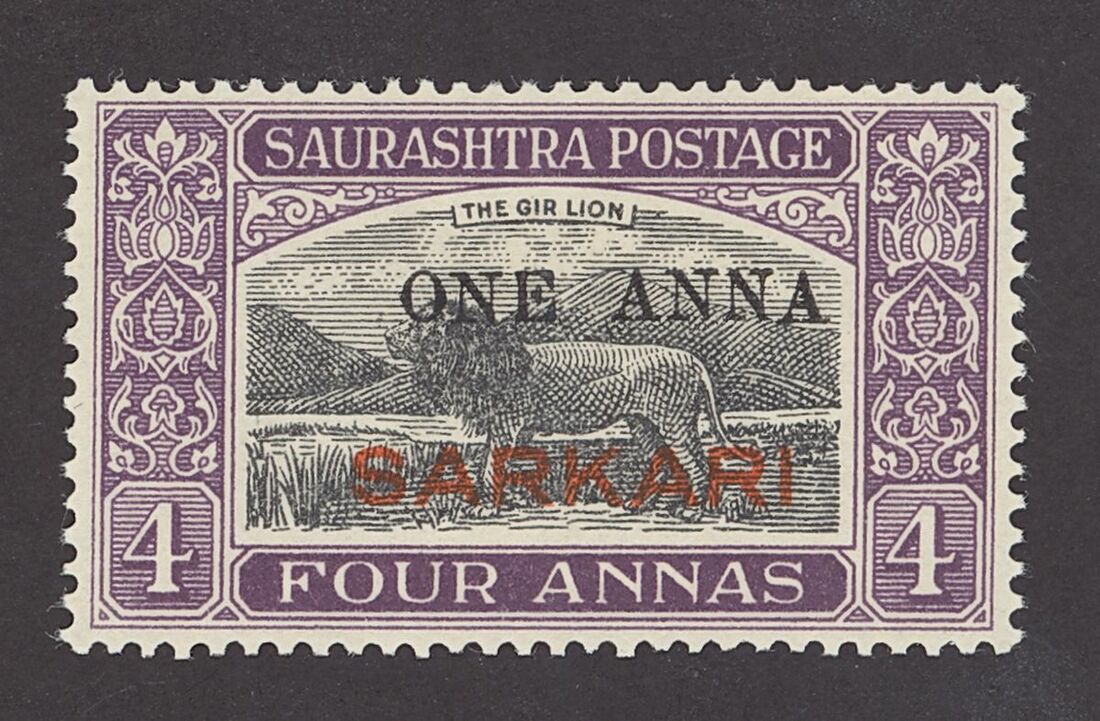 Official 1948 1a. on 4a. black and purple, large part original gum. Fine. S.G. O16, £700.