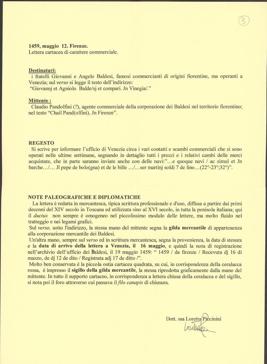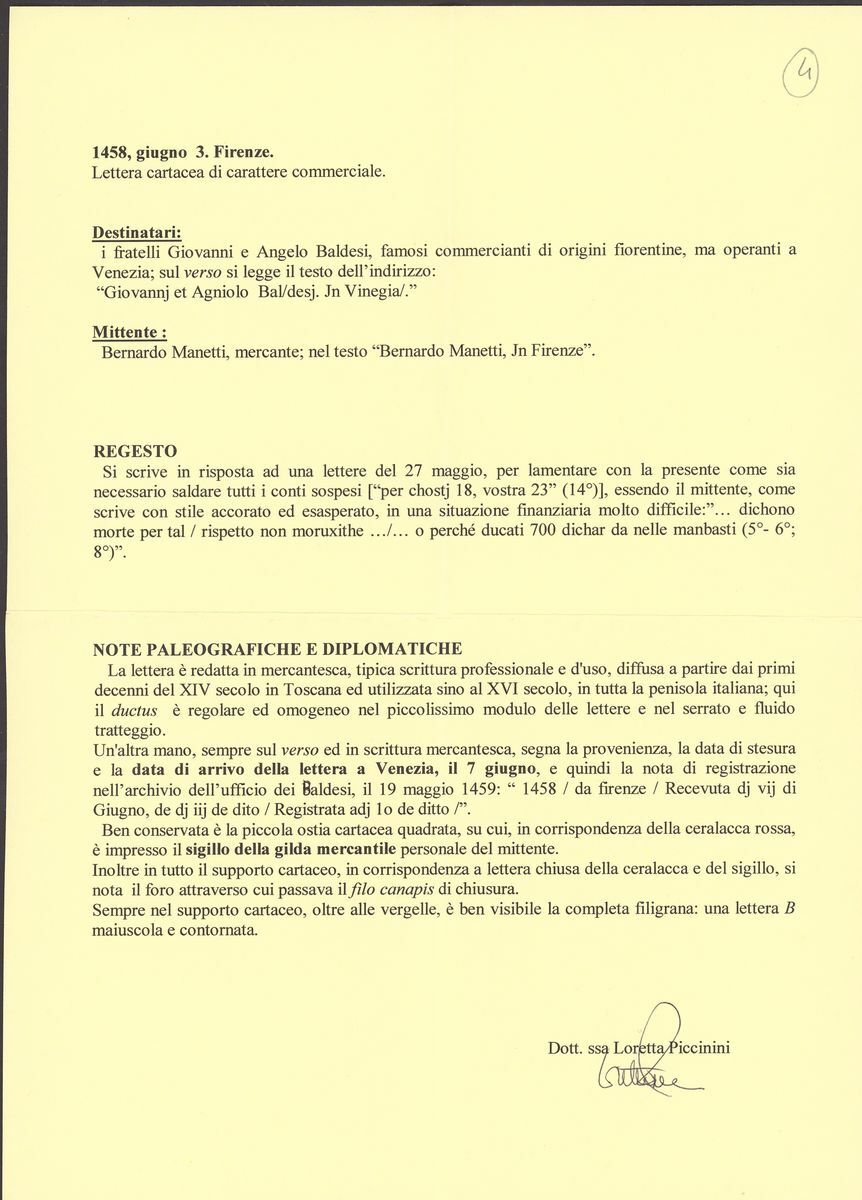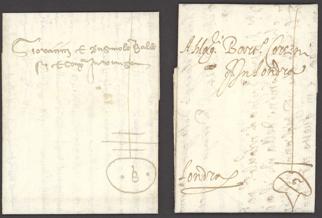 1458-1502, merchant's entire letters from Angelo Baldesi (1) to Bernardo Manetti and to Baldesi (4) from Claudio Pandolfini(?), Luigi Cappon(?), Giovanni Alazni(?) and Vincenzo Altonini, all except one with Merchant's Guild markings, the majority concerning accounts and purchased goods and generally fine.