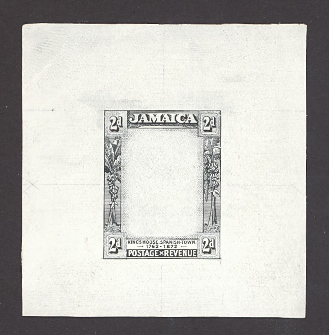 1919-21 2d. die proof of the frame in black on highly surfaced wove paper (53x55mm.). Fine.