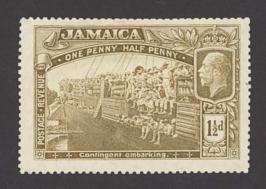1919-21 1½d. perforated colour trial in bistre on gummed upright watermarked paper, small thin at top left not affecting fine appearance.