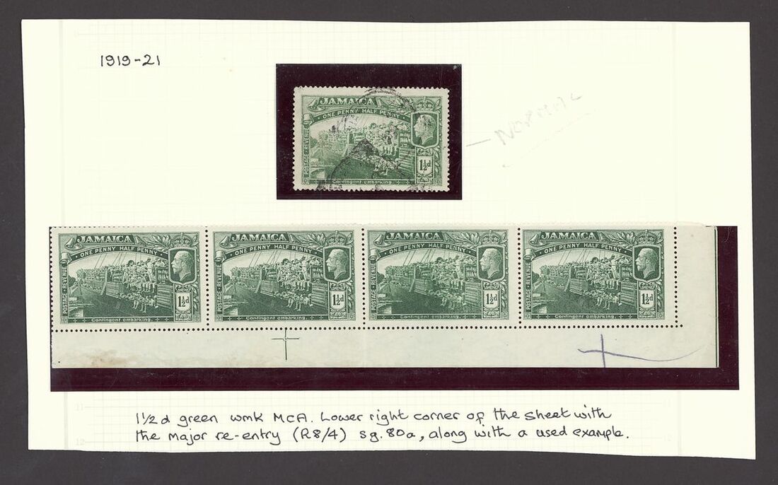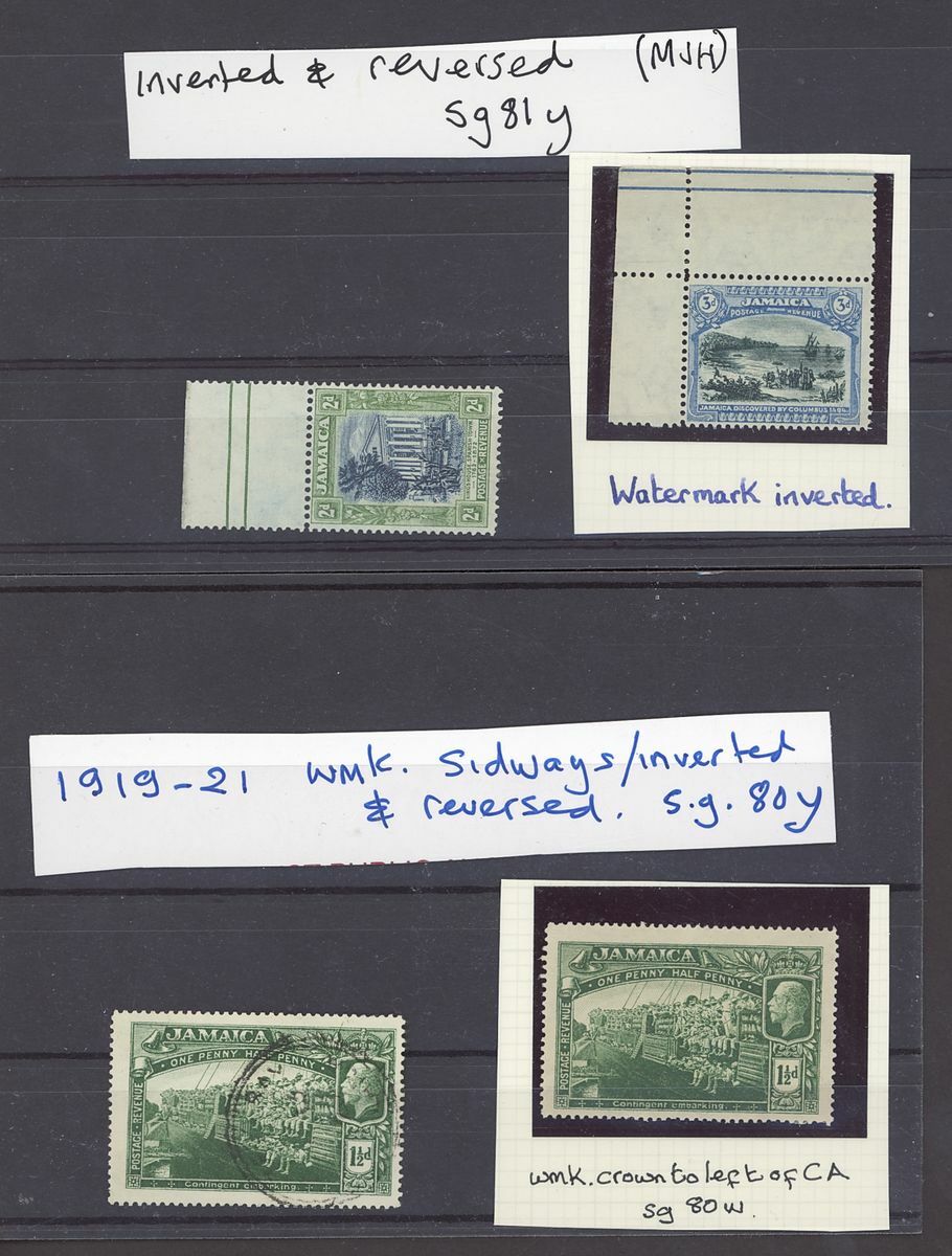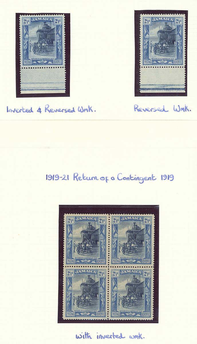 1919-21 mint and used collection, the mint with values to 3/- include 1½d. with Crown to left of "CA" and a lower right corner strip of four one with major re-entry, 2d. with watermark inverted and reversed, 2½d. with watermark reversed, a block of four with watermark inverted and a single with watermark inverted and reversed and 3d. with watermark inverted; the used with values to 10/- include 1½d. with watermark sideways inverted and reversed. Condition a little mixed but the varieties are fine.