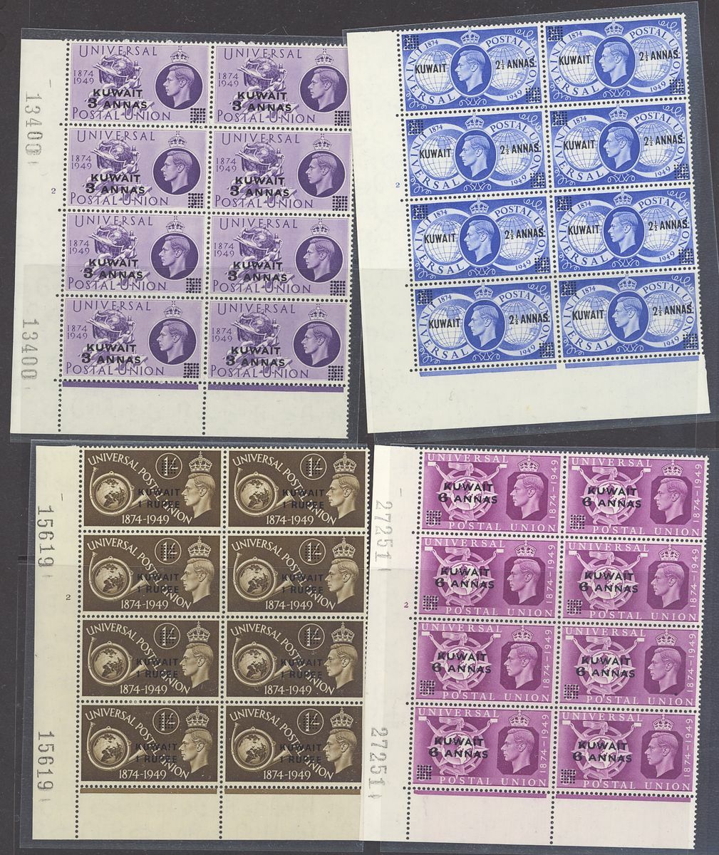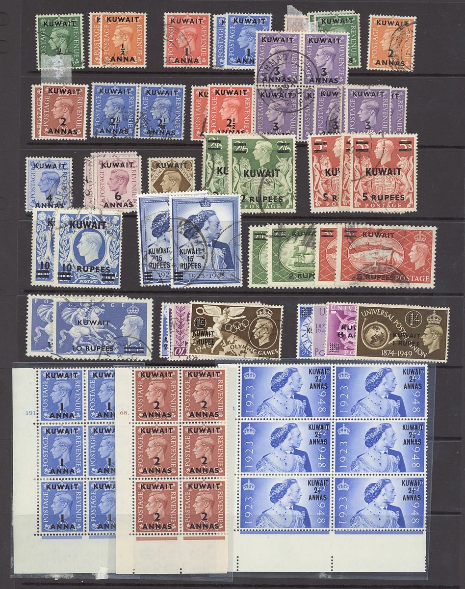 1948-55 mint and used selection (140+) on pages, including 1948-49 10r. on 10/- (3), 1948 Wedding 15r. on £1 (2), 1948 U.P.U. set in cylinder number blocks of eight and a used set, 1950-55 10r. on 10/- (2), etc., chiefly fine