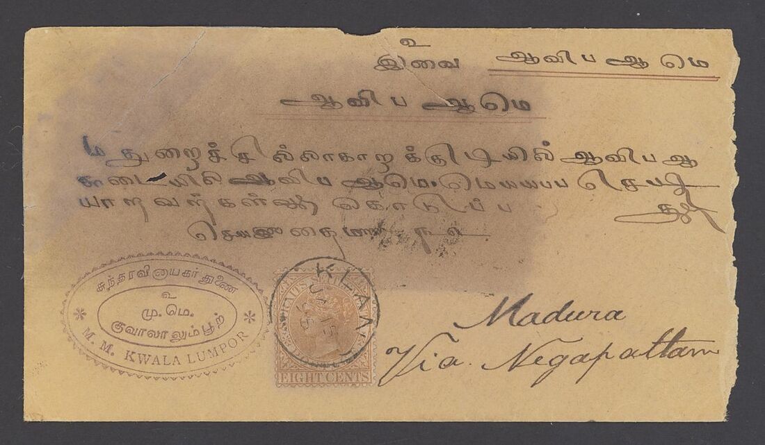 1895 (15 Jan.) envelope to India, bearing Straits Settlements 1882 8c. orange tied by