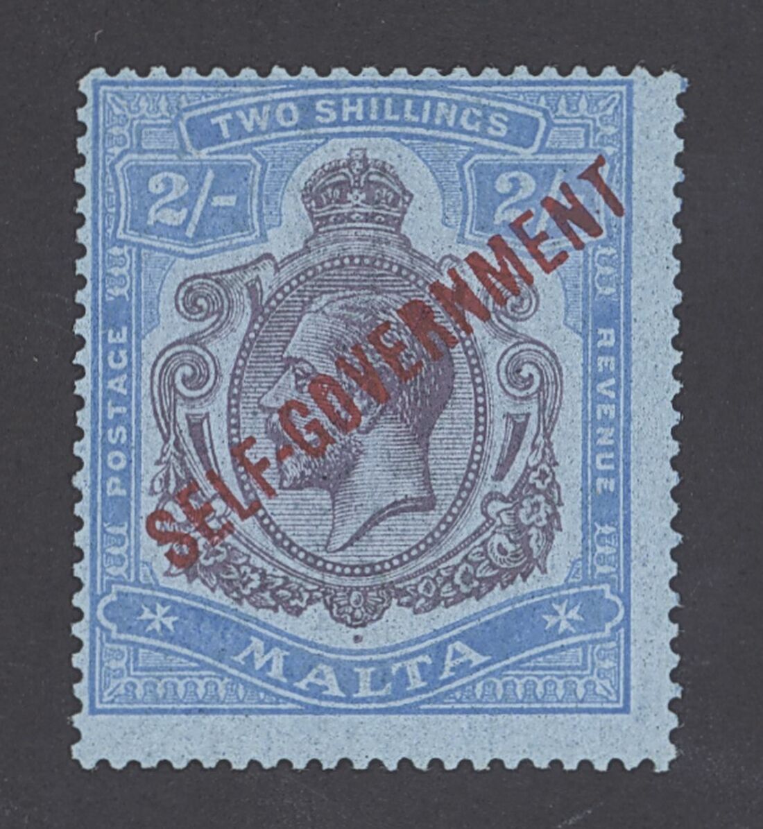 1922 Script 2/- purple and blue/blue variety broken crown and scroll, large part original gum, fine. S.G. 120b, £300