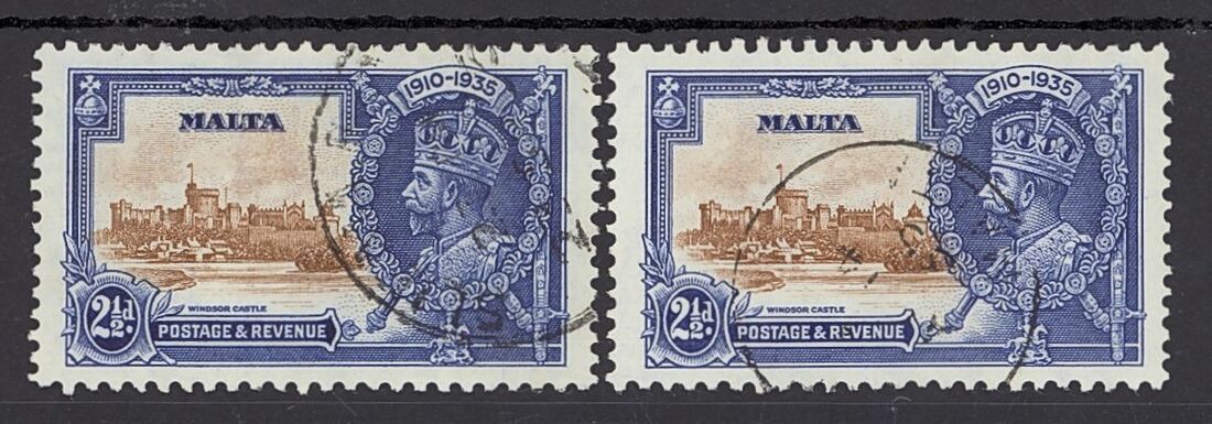 1935 Jubilee 2½d. variety extra flagstaff and 2½d. variety lightning conductor, both used with large part of date stamp, a fine duo. S.G. 211a, 211c, £415