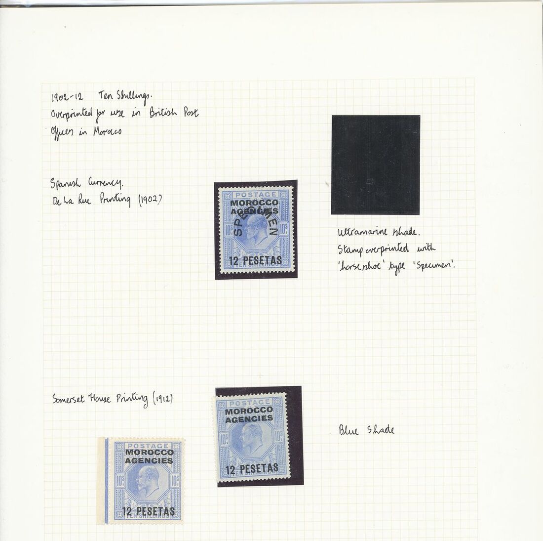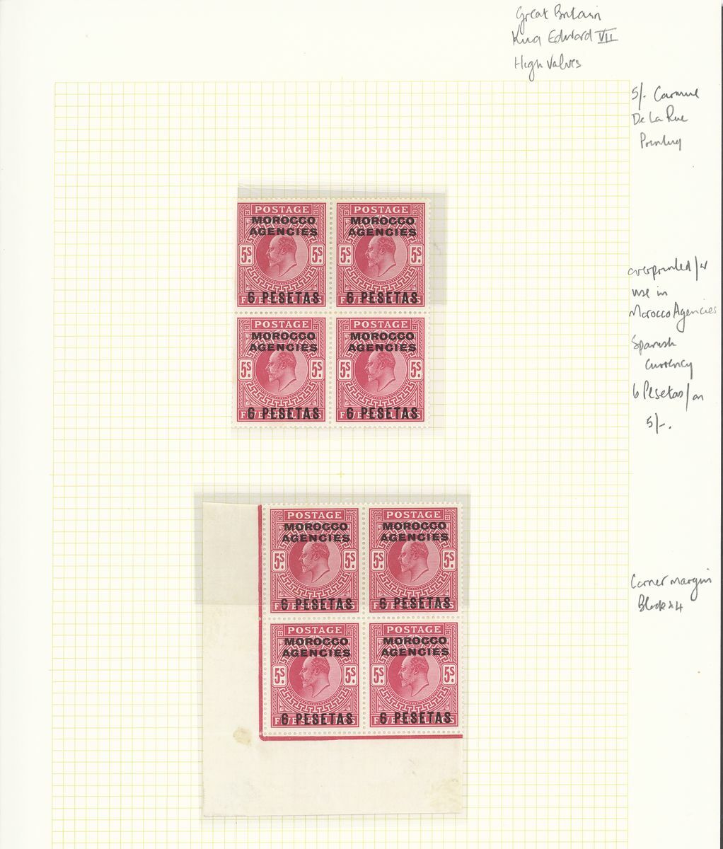 1898-1946 mint and used collection neatly arranged on album pages including 1898-1900 25c. variety inverted 'V ' for 'A' used, 1899 5c. to 25c. variety hyphen between 'nc' mint, 1905-06 10c. variety watermark inverted block of four mint; 1907-13 British Currency 2/6d. mint; Spanish Currency mint 1907-12 6p. on 5/- block of four (2), 12p. on 10/- (3, one Specimen), 1912 Somerset printing 12p. on 10/- pair; also some postal history, generally fine.