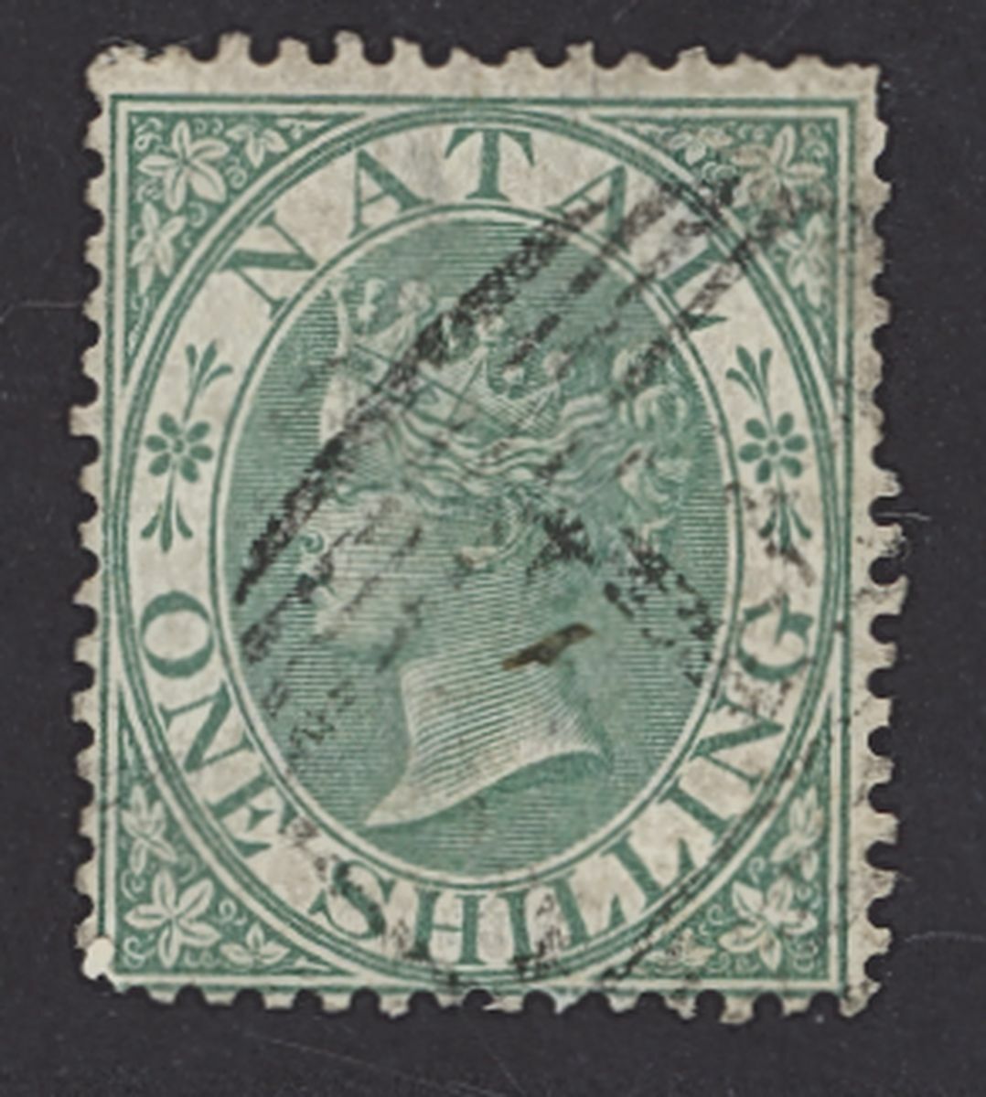 1867 (Apr.) CC 1/- green with watermark inverted, a few shortish perfs at right otherwise fine and lightly cancelled. S.G. 25w, £400