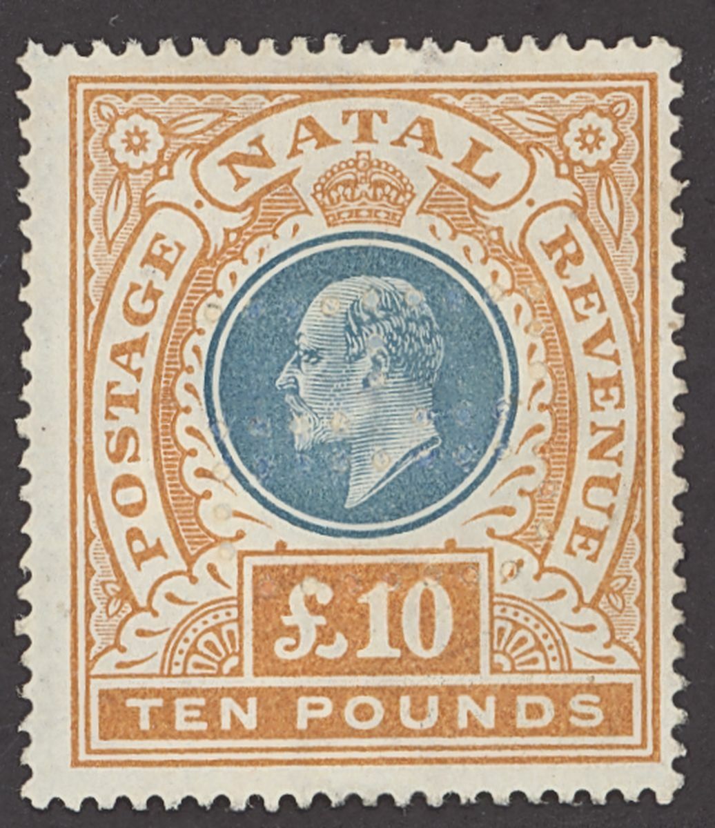 1902 £10 green and orange fiscally used by punch holes then repaired and regummed, an attractive spacefiller, S.G. 145 (f.c. £125, £18,000 for mint)