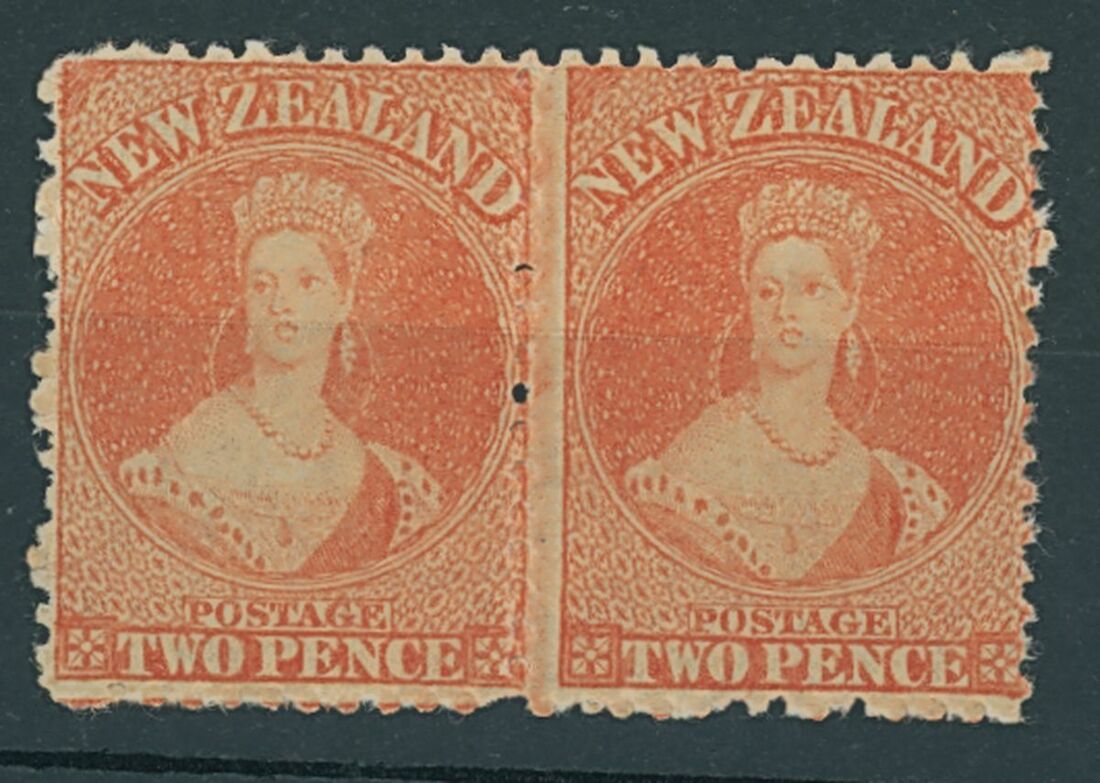 1873 2d. vermilion horizontal pair mint with the left stamp mounted and the other unmounted, fresh colour and gum, very fine. S.G. 138, £360++