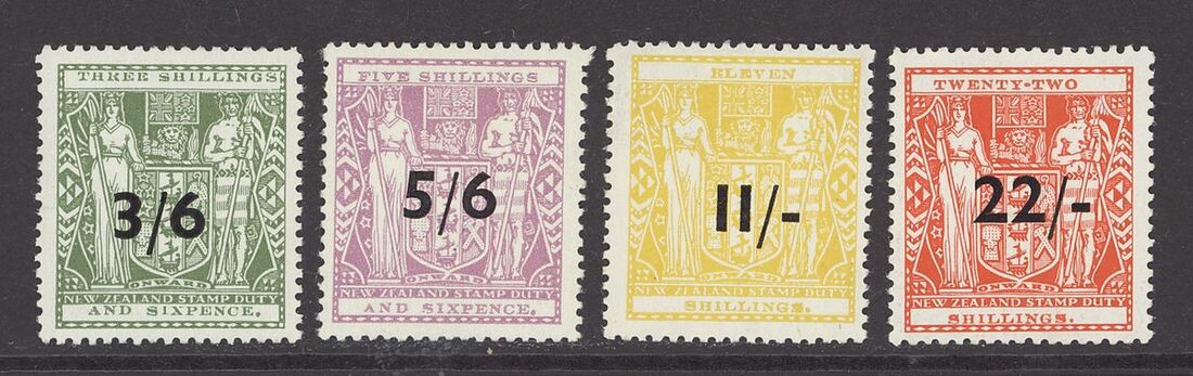 1940 3/6 on 3/6d., 5/6 on 5/6d., 11/- on 11s and 22/- on 22s., lightly mounted original gum. Fine. S.G. F187-F190, £1,100