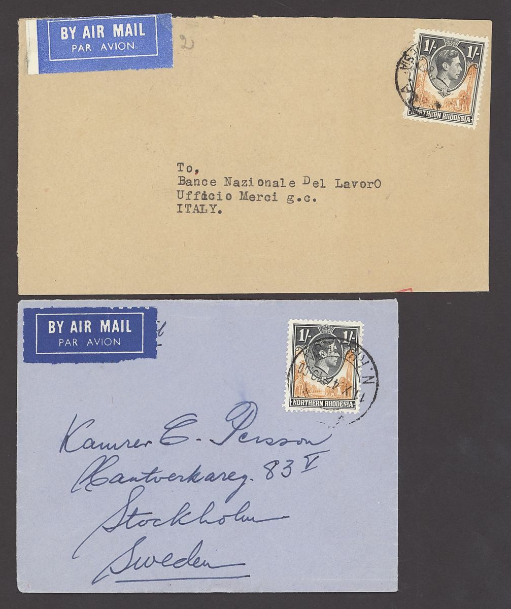 1950-52 quartet to Europe comprising items to Cyprus at 1/- Ireland at 9d. (date unclear), Italy at 1/- and Sweden at 1/-; an unusual group