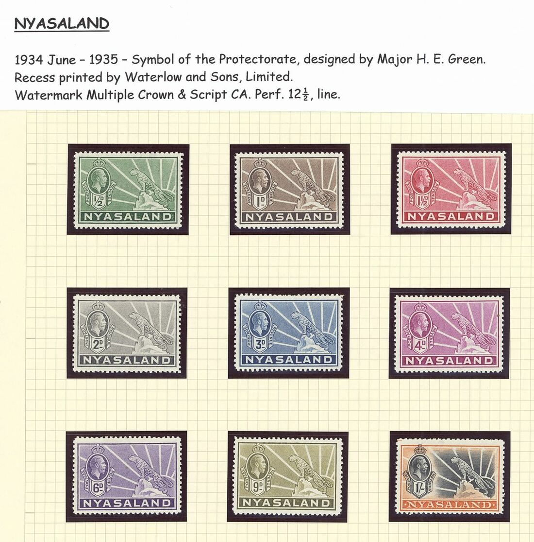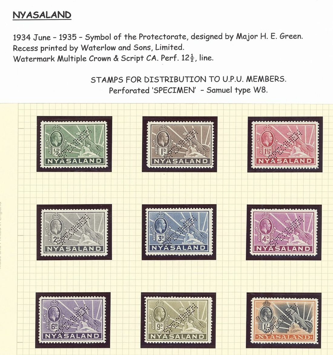 1934-35 ½d.. to 1/- set of nine perforated "