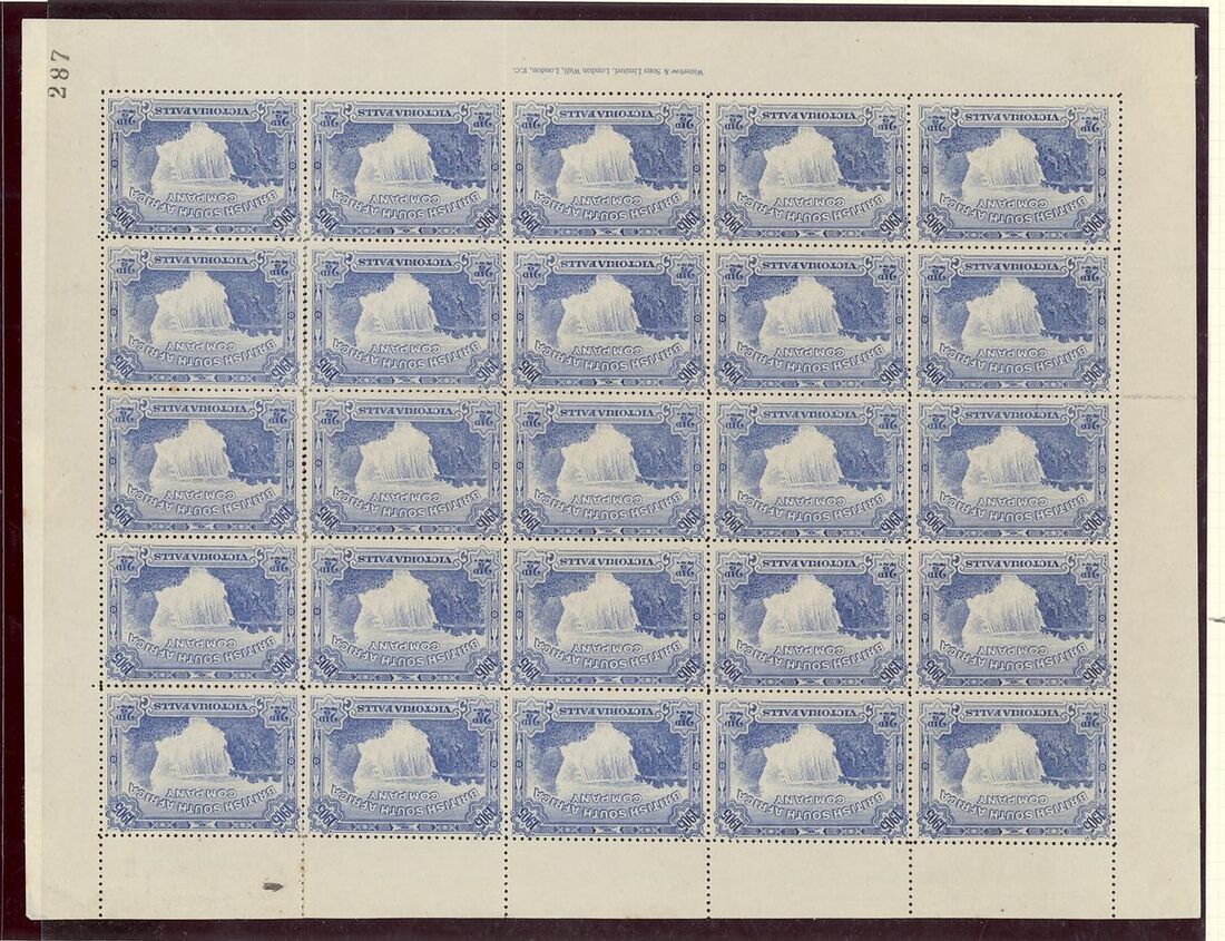 1905 Falls 2½d. deep blue Type B complete sheet of twenty-five with sheet number "287" at lower right corner and engraver's mark on [7], perforations throughout 14.0-14.1, lovely fresh bright colour and mainly unmounted mint; a couple of small imperfections. S.G. 95