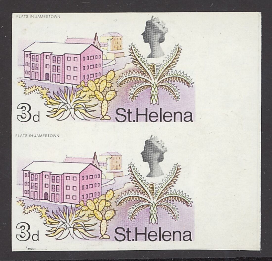 1968 3d Tree Fern and flats in Jamestown, right marginal vertical pair variety "imperforated" unmounted mint, usual slightly patchy gum, otherwise fine and rare. S.G. 230var
