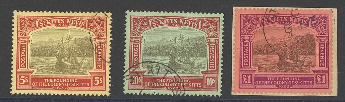 1923 Tercentenary 5/-, 10/- and £1 all neatly cancelled by Madame Joseph cancellations, the latter on piece, the 10/- with 'Madame Joseph Forged Cancel' handstamp on reverse. Very fine. S.G. 58, 59, 60