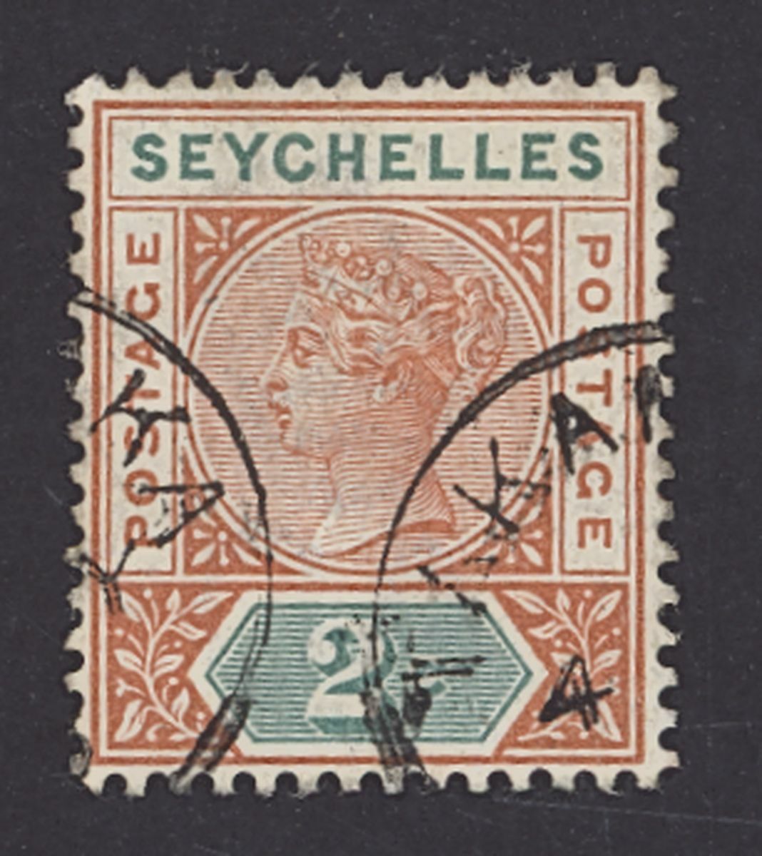 1897-1900 2c. orange-brown and green cancelled by two neat partial strikes of