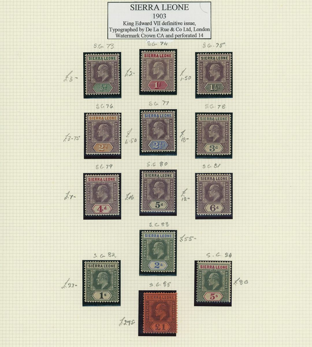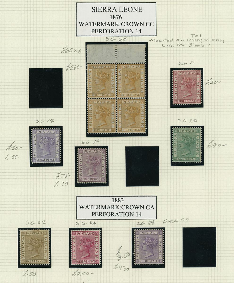 1859-1944 mint collection on album pages including 1859-74 6d. (2, S.G. 1 and 2), 1876 with values to 1/- and with 3d. marginal block of four, 1884-91 set to 1/-, 1896-97 set to £1, 1897 Fiscal group including 2½d. on 6d. overprinted types 11 and 12, 1903 set to £1, 1904-05 set to £1, 1907-12 part set to 5/-, 1912-21 set to £1, 1921-27 set to £1, 1932 set to £1, 1933 Wilberforce set to £1 and 1938-44 set to £1; generally good to fine. Cat in excess of £5,000
