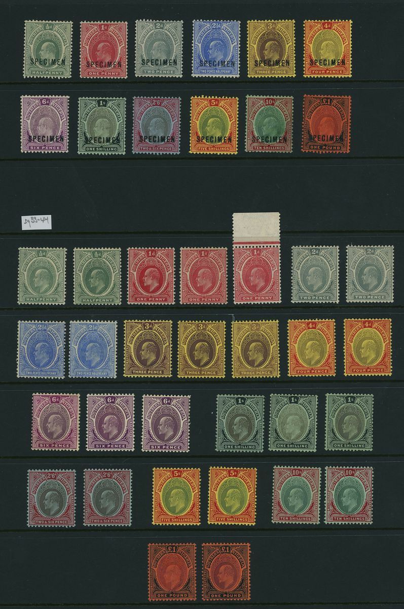 1904-09 ½d. to £1 duplicated Specimen, mint and used selection with same shades on ordinary paper and chalky paper, including £1 (4, two mint, one specimen and one used) good to very fine. S.G. 33-44 group. (52)