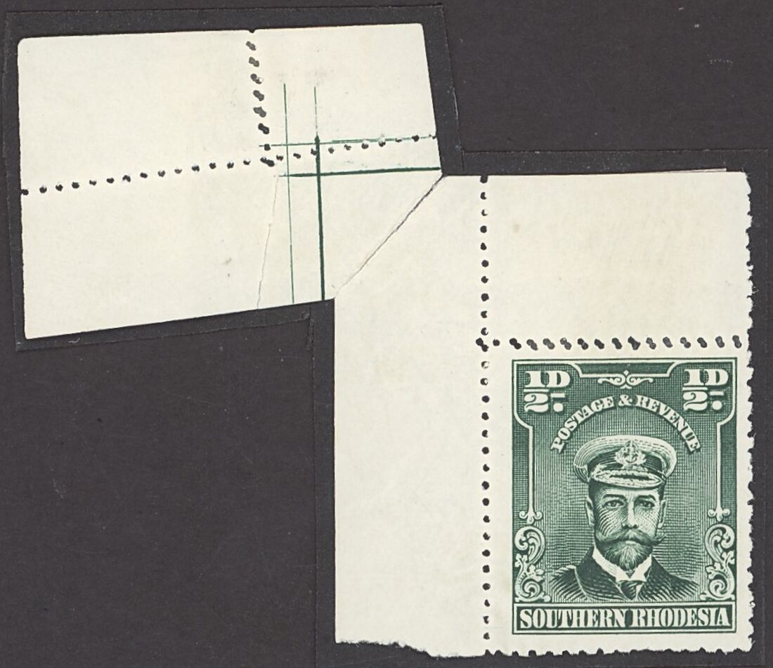 ½d. blue-green upper left corner example with large paper fold showing guillotine marks, fine mint. A rare and unusual variety
