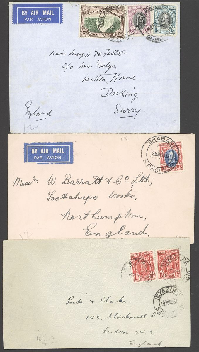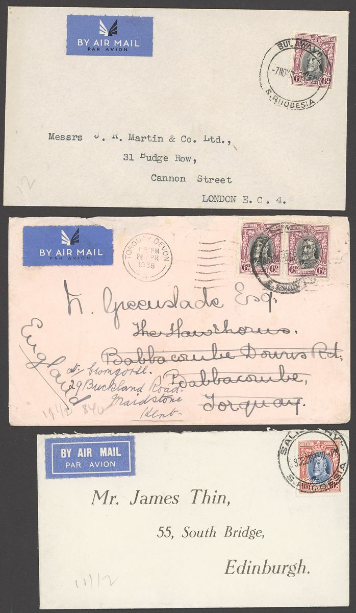 A group of covers (17) all addressed to the UK and with a range of frankings including 1d. pair (3), 6d. (8) 10d. (4), 1/- rate made up with 6d. pair sent to Torquay and re-directed to Kent and 1/8d. rate to Surrey made up of 6d. and 1/- and 2d. Falls issue, various cancellations also a couple of postcards etc.