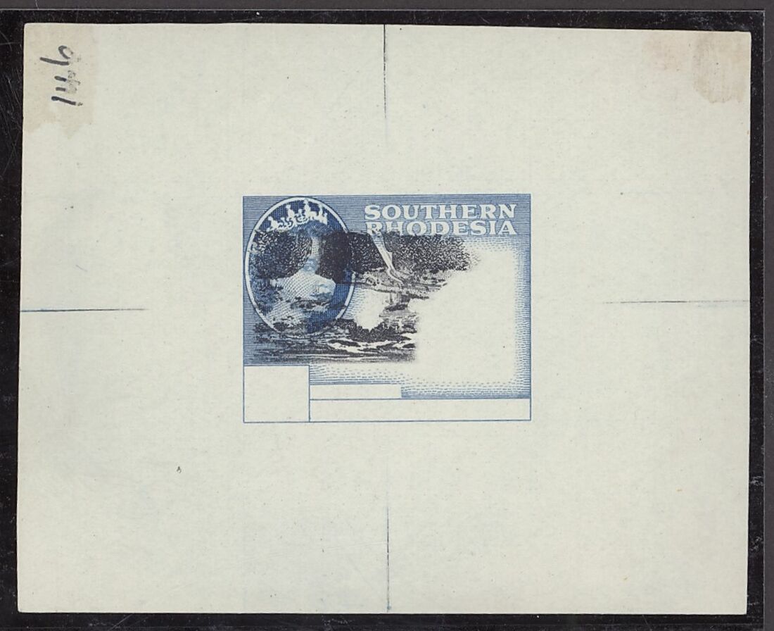 4½d. complete design in black and deep bright blue printed on gummed paper, with vignette inverted and misplaced over Queen's portrait, and numbered "146"; highly unusual for work by Bradbury Wilkinson