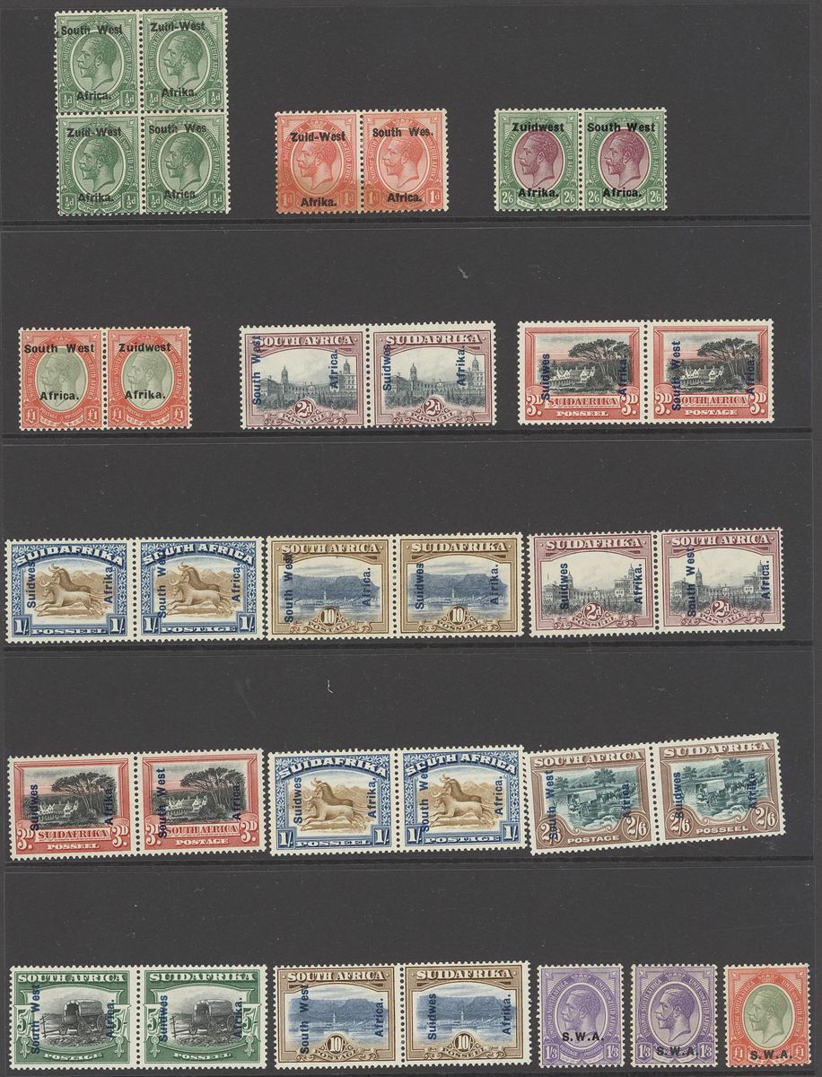 1923-27 mint selection on a Hagner page comprising 1923 Setting I ½d. green block of four and 1d. rose-red pair (stained), both showing variety