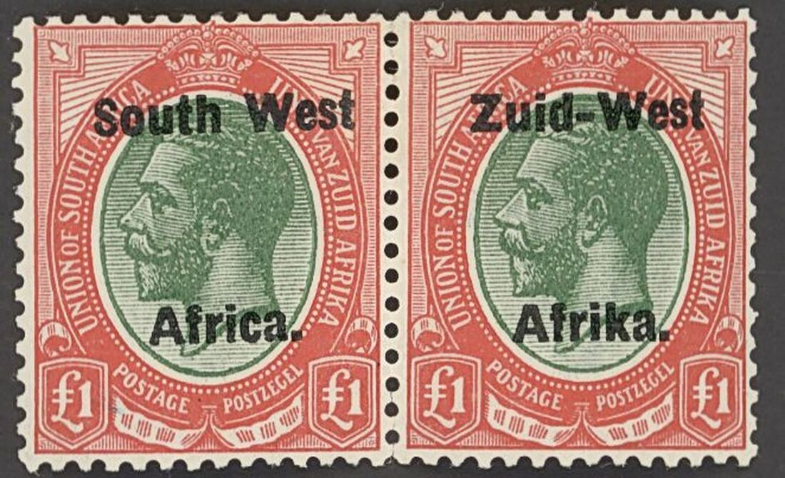 1923 (31 Mar.) Setting II £1 green and red, bi-lingual pair; lightly mounted mint; very fine. S.G. 15, £1,200