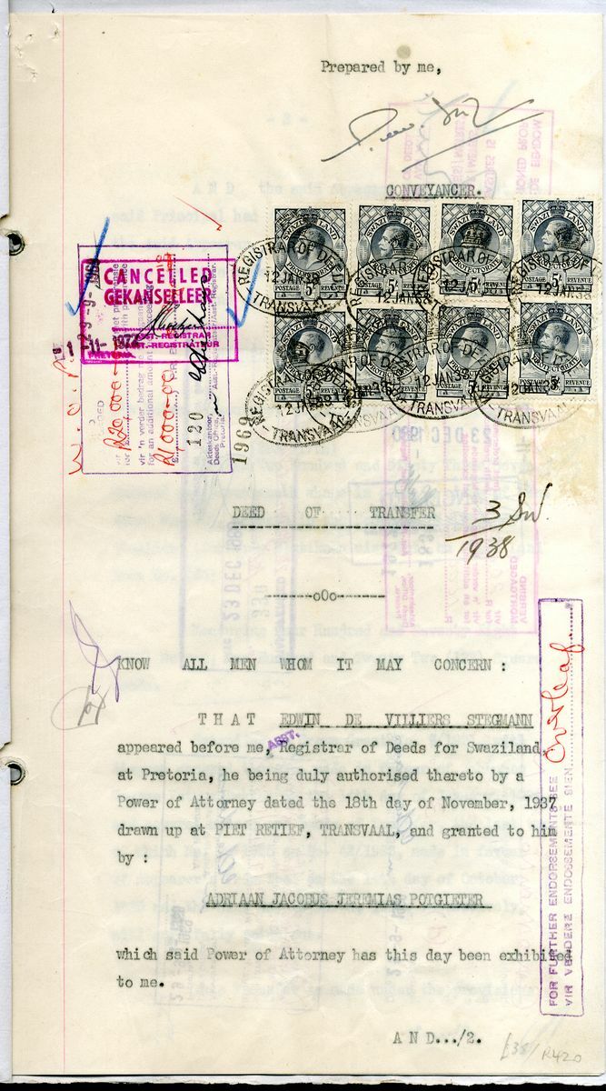 1935 (8 June) Deed of Transfer bearing 1/- (2), 5/- and 10/- (3), all tied by "