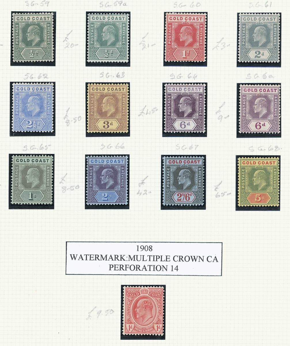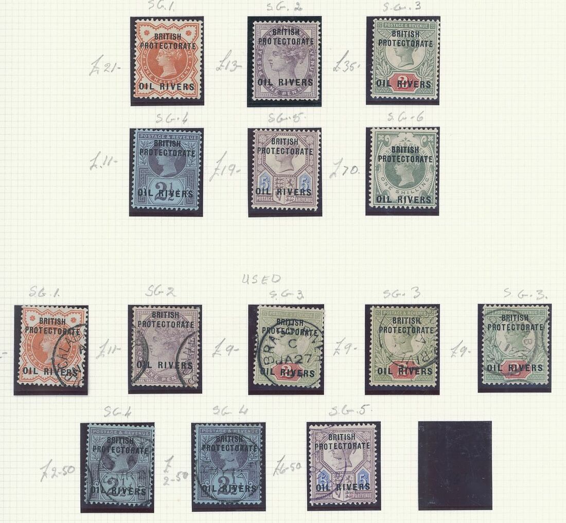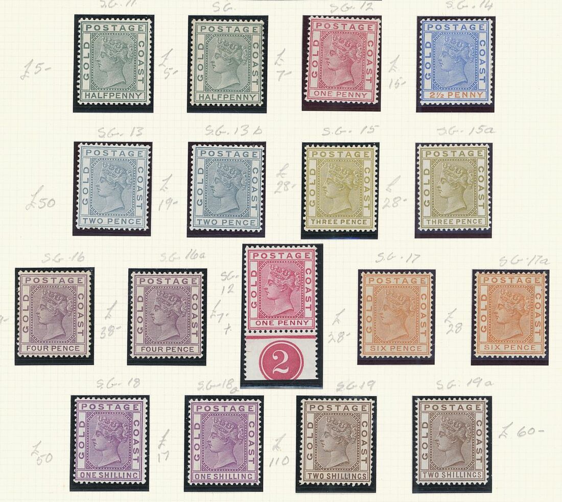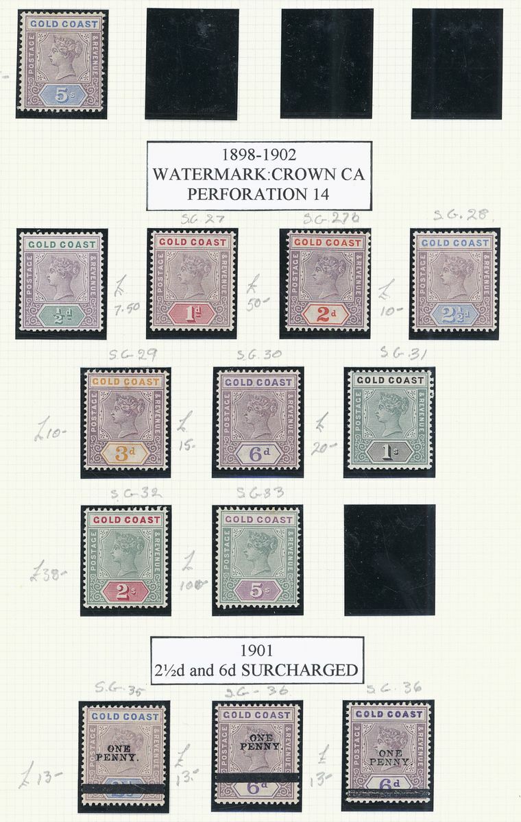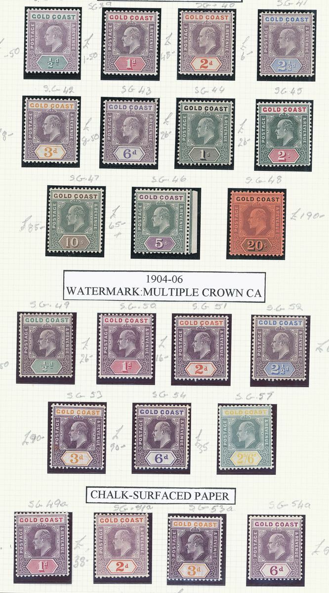 A mint West Africa collection on album pages including Gold Coast with 1884-91 set to 2/-, 1898-1902 set to 5/-, 1902 set to 20/-, 1904-06 set to 2/6d., 1907-13 set to 5/-, 1938-44 set to 5/-, Lagos with 1887-1902 part set to 5/-, 1904-06 set to 10/-, Niger Coast Oil Rivers 1892-94 set to 1/-, Niger Coast sets with values to 10/-, Northern Nigeria with 1900 part set to 2/6d., 1902 set to 10/-, 1905-07 part set to 2/6d., 1910-11 set to 10/-, Southern Nigeria with 1901 and 1903 sets to 10/-, 1904-09 part set to 5/-, 1907-11 set to 10/-, Nigeria 1938-47 set to 5/-, etc.,