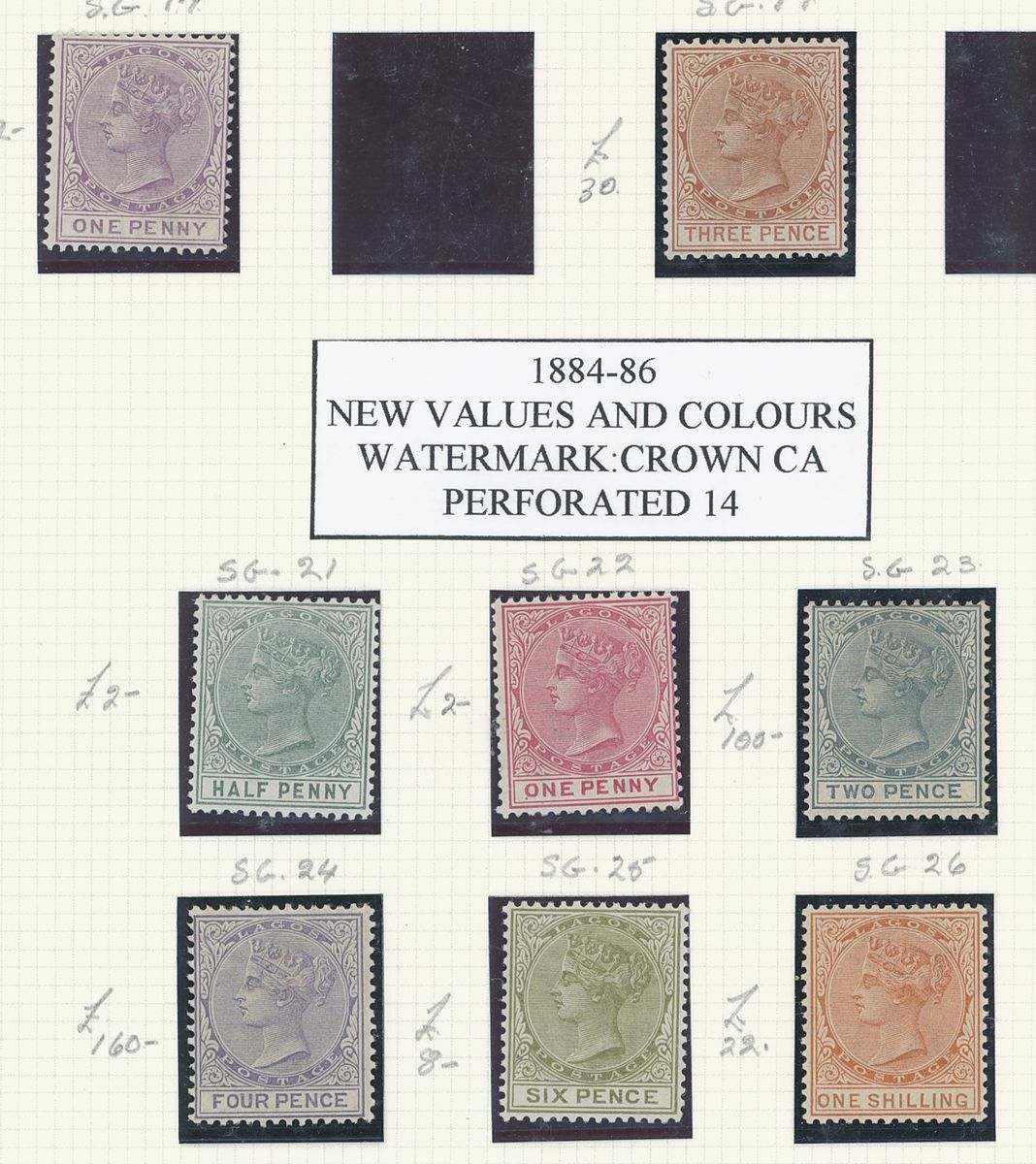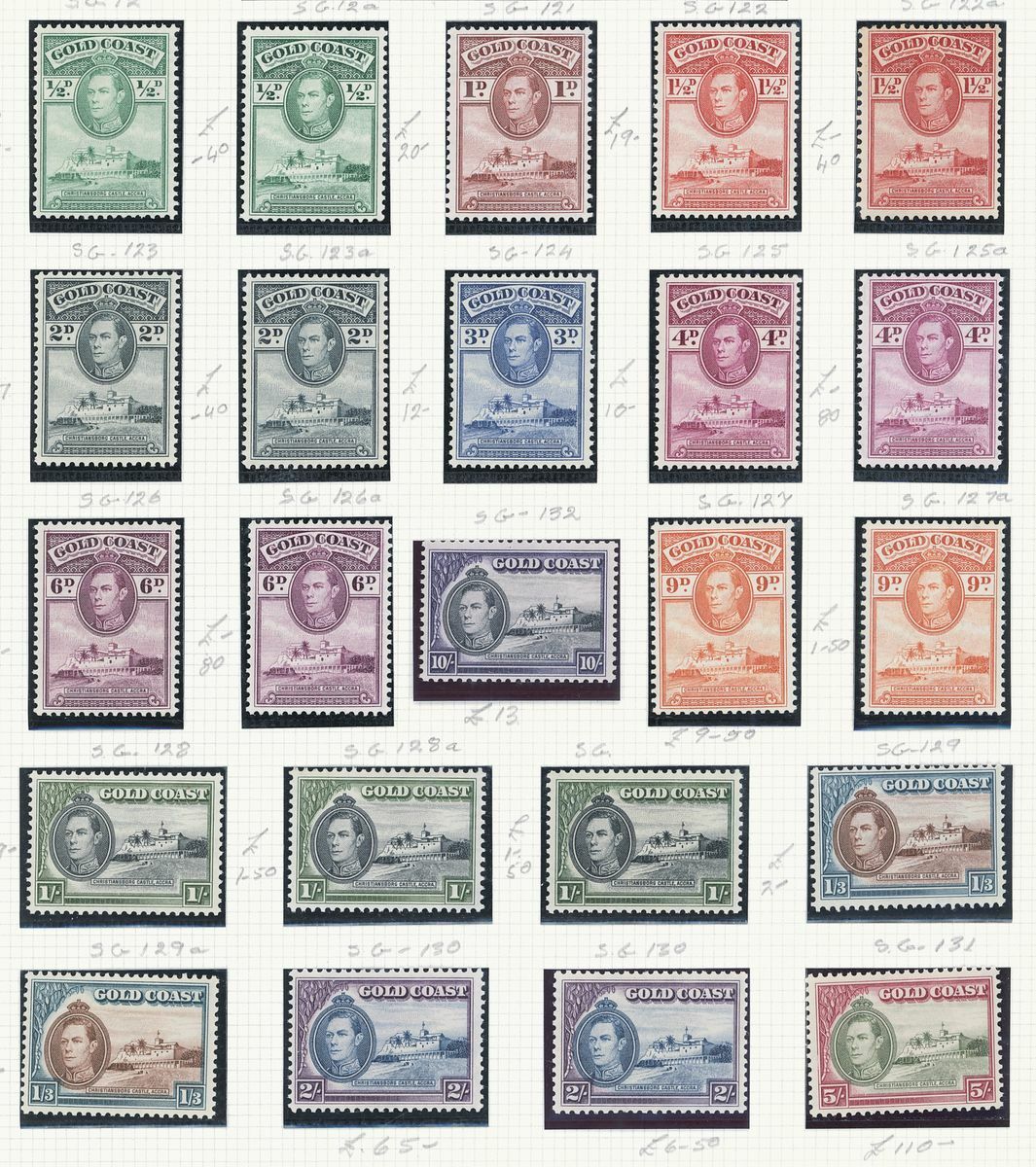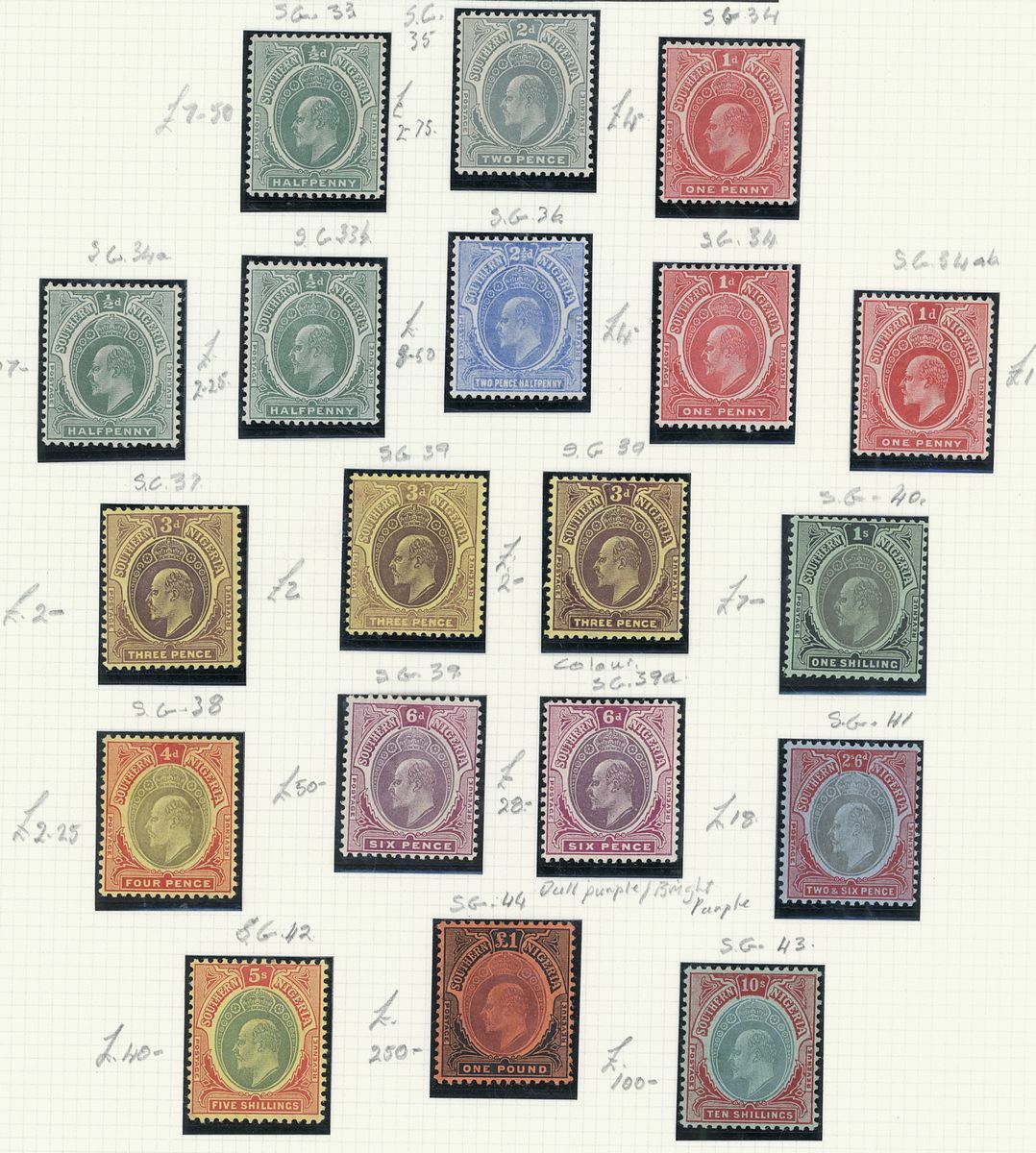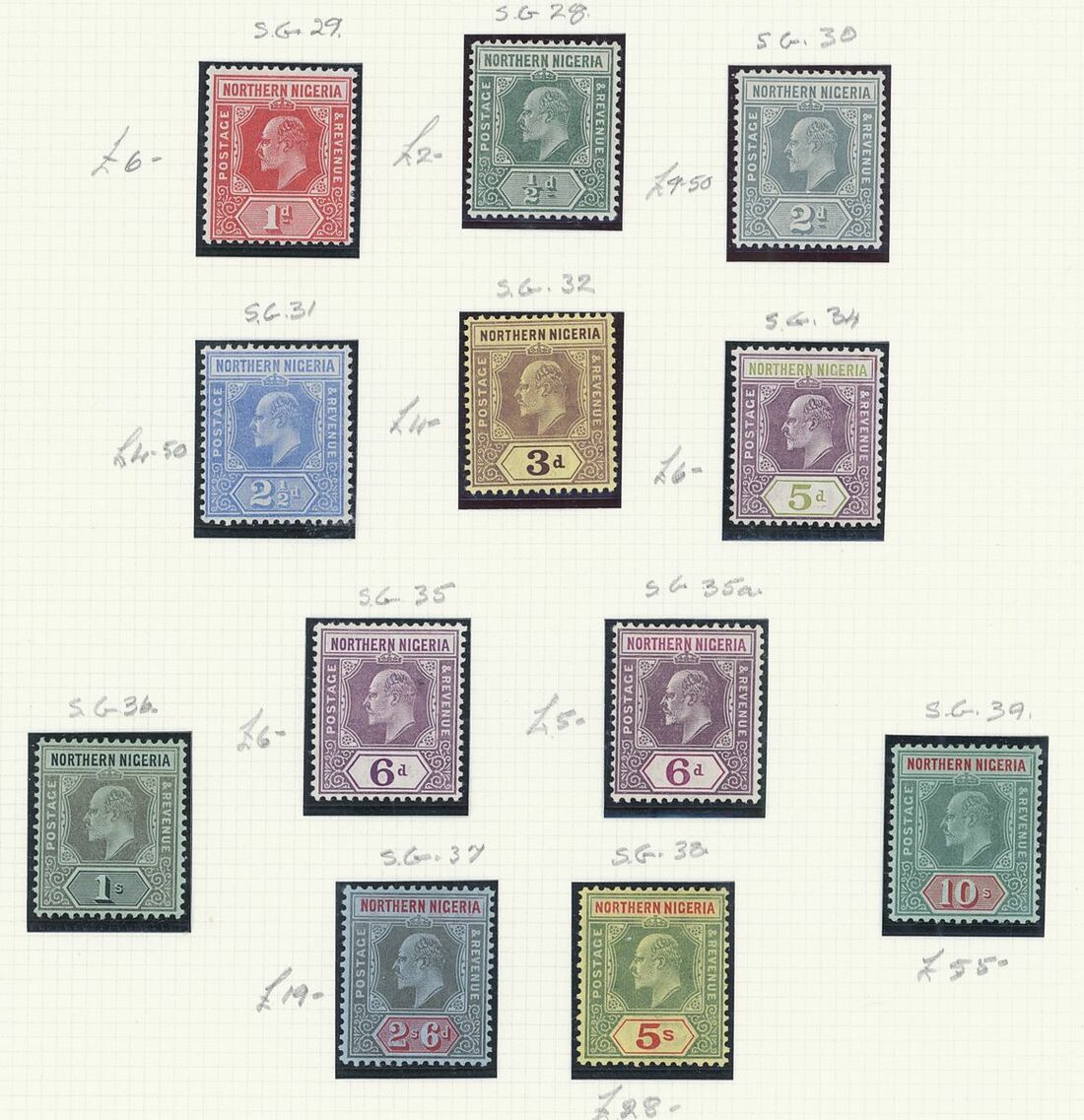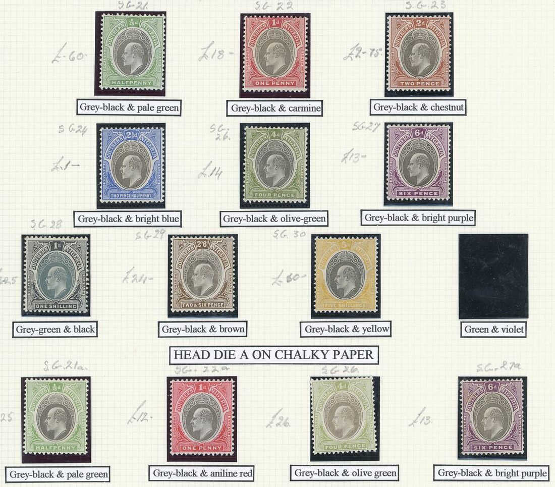 A mint West Africa collection on album pages including Gold Coast with 1884-91 set to 2/-, 1898-1902 set to 5/-, 1902 set to 20/-, 1904-06 set to 2/6d., 1907-13 set to 5/-, 1938-44 set to 5/-, Lagos with 1887-1902 part set to 5/-, 1904-06 set to 10/-, Niger Coast Oil Rivers 1892-94 set to 1/-, Niger Coast sets with values to 10/-, Northern Nigeria with 1900 part set to 2/6d., 1902 set to 10/-, 1905-07 part set to 2/6d., 1910-11 set to 10/-, Southern Nigeria with 1901 and 1903 sets to 10/-, 1904-09 part set to 5/-, 1907-11 set to 10/-, Nigeria 1938-47 set to 5/-, etc.,