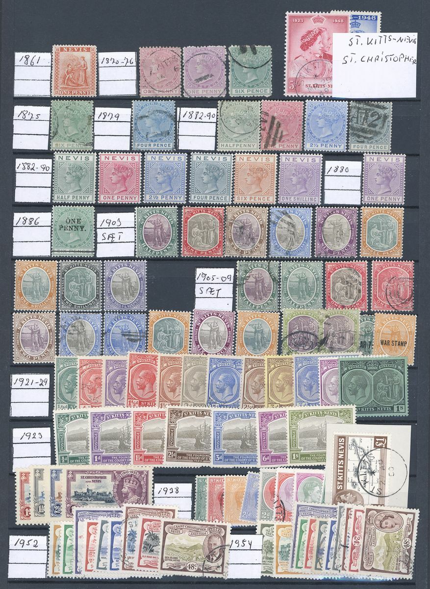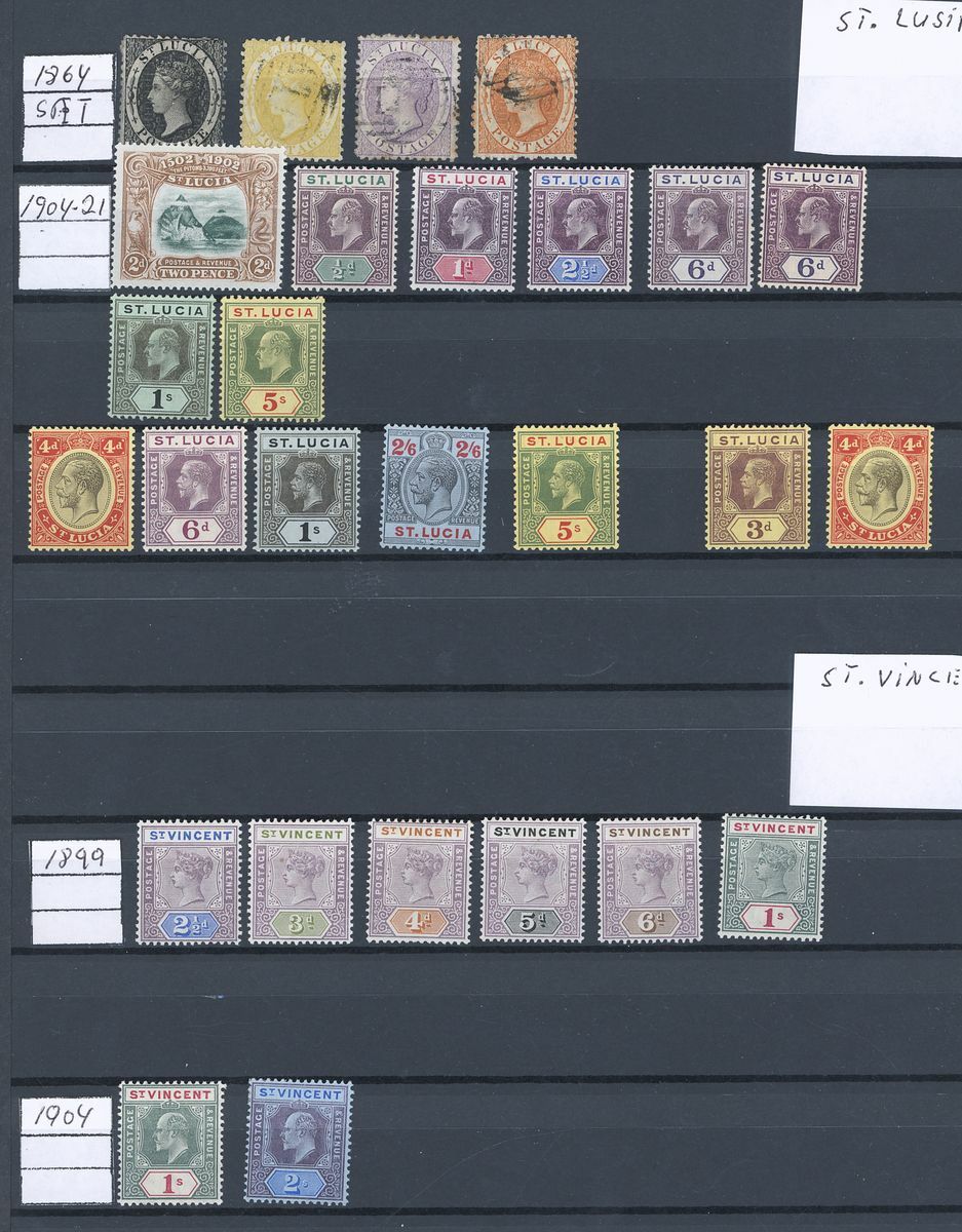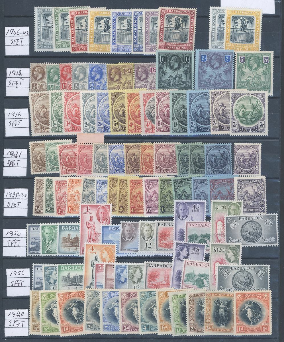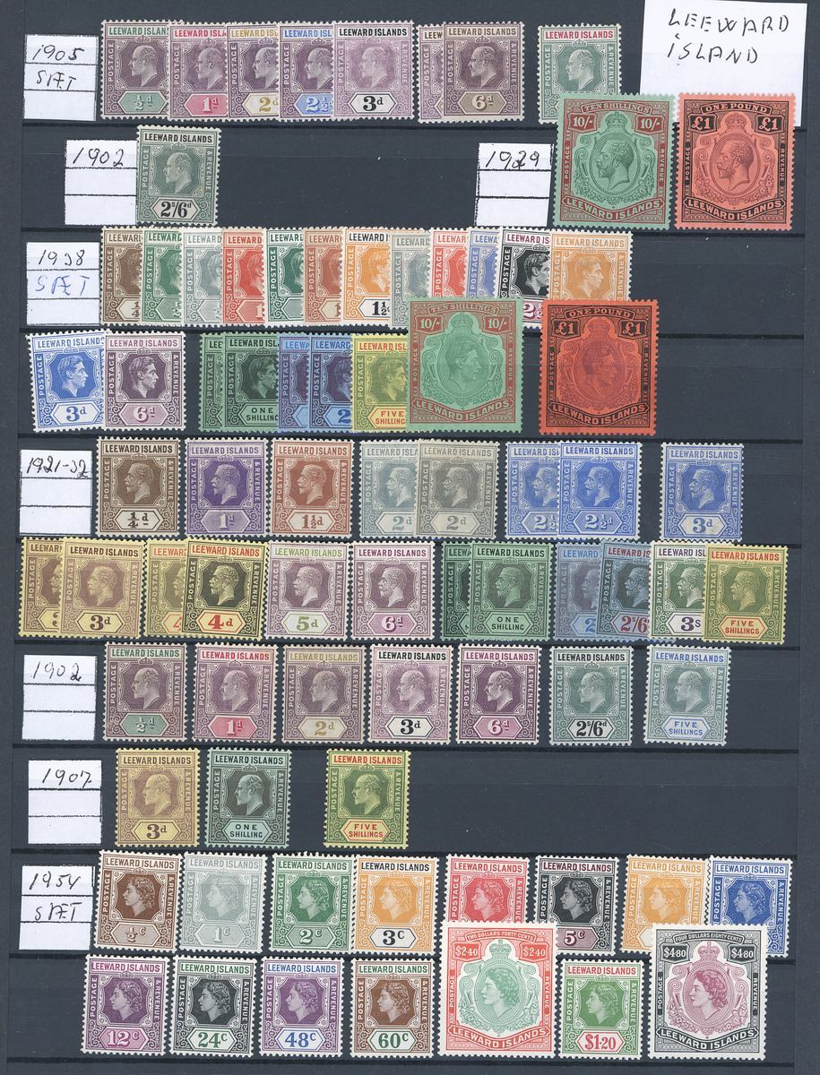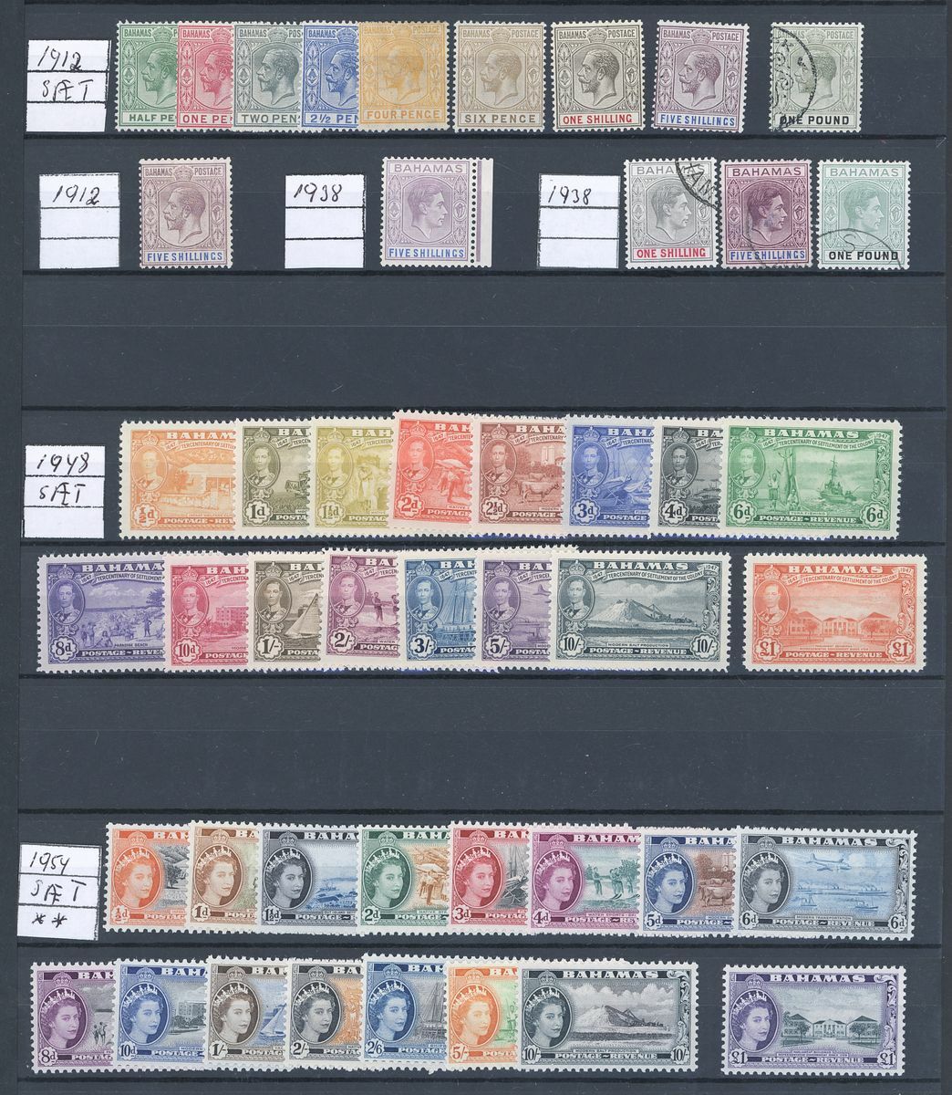 A large mint and used British West Indies collection on stockpages including Antigua with 1913 5/-, and later complete mint sets with 1921, 1932, 1938 and 1953 sets, Bahamas with 1912 set to 5/- mint and £1 used, 1938 1/-, 5/- and £1 used, 1948 and 1954 sets mint, Barbados with 1906, 1912, 1916, 1921, 1950 and 1953 sets, British Guiana with 1889 set to 96c., 1900 set to 60c., 1931 set to $1, 1934 set to $1, 1954 set to $5, British Solomon Islands with 199 set to 10/- mint, British Honduras with 1888 surcharge set and later sets to 1953, Cayman Islands with 1923 set to 10/-, 1935 set to 10/-, 1938, 1953 and 1962 sets, Dominica with 1938, 1951 and 1954 sets, Jamaica with values to £1, Leeward Islands with full sets and values to £1, Montserrat including 1916 2/6d. and 5/-, and also 1938, 1951 and 1953-58 sets, St. Christopher, St. Kitts and Nevis including Nevis 1882-90 set to 1/-, later sets with mint/used, St. Lucia including 1904 set to 5/- and 1912-21 values to 5/-, St. Vincent 1899 set to 1/- and 19041/- and 2/-, Turks and Caicos with 1900 and 1913 sets to 3/-, 1921 set to 1/-, 1928 set to 10/-, etc., Trinidad and Tobago, etc., plenty good to fine and high catalogue value in excess of £9,000