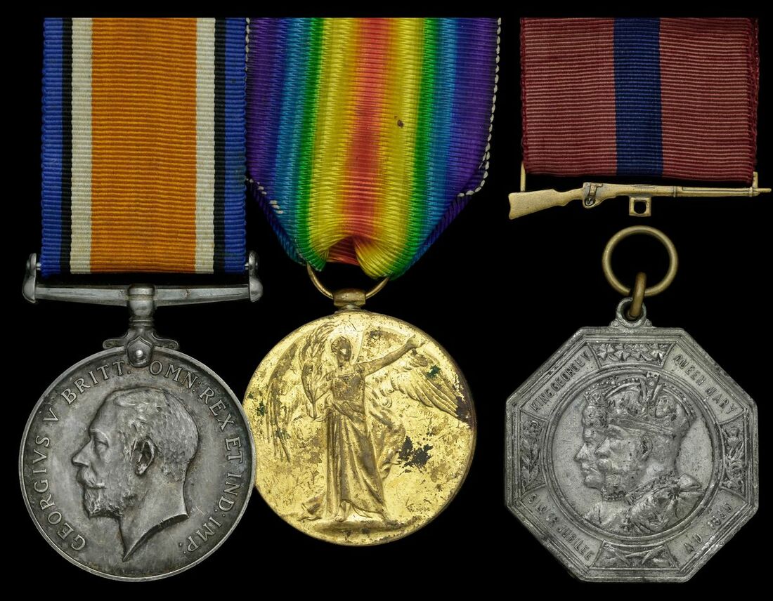 Arthur George Green served with the 7th (M.B.) Field Ambulance before being posted to the 35th Casualty Clearing Station and finally seeing service at the 1st (SM.M.B.) Field Ambulance; sold together with a County of Middlesex Silver Jubilee Medal and a shooting medal along with a copied medal roll.
