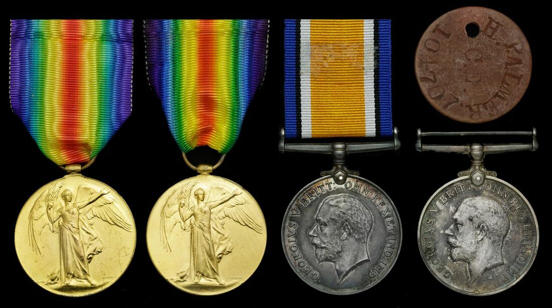 Harry Thomas Palmer was enlisted with the Devonshire Regiment on 24 June 1916 and was mobilised on 1 March 1917. He had not served for long before he was transferred to 175 Company, Labour Corps on 14 May 1915. Palmer was demobilised on 5 November 1919; sold together with an original dog tag.