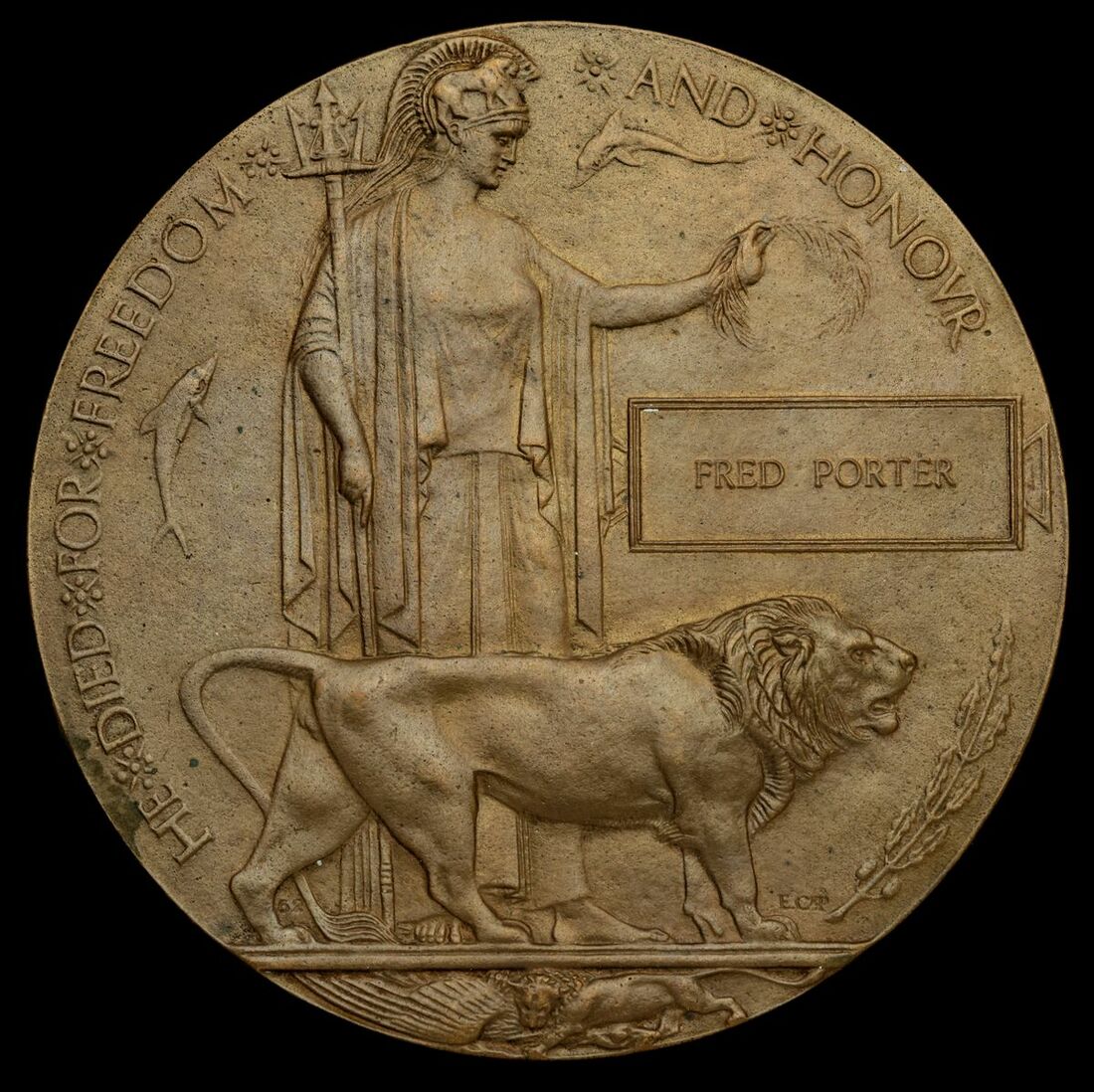 British War and Victory Medals (15344 Pte. F. Porter. Linc. R.); Great War Bronze Memorial Plaque (Fred Porter), good very fine (3)