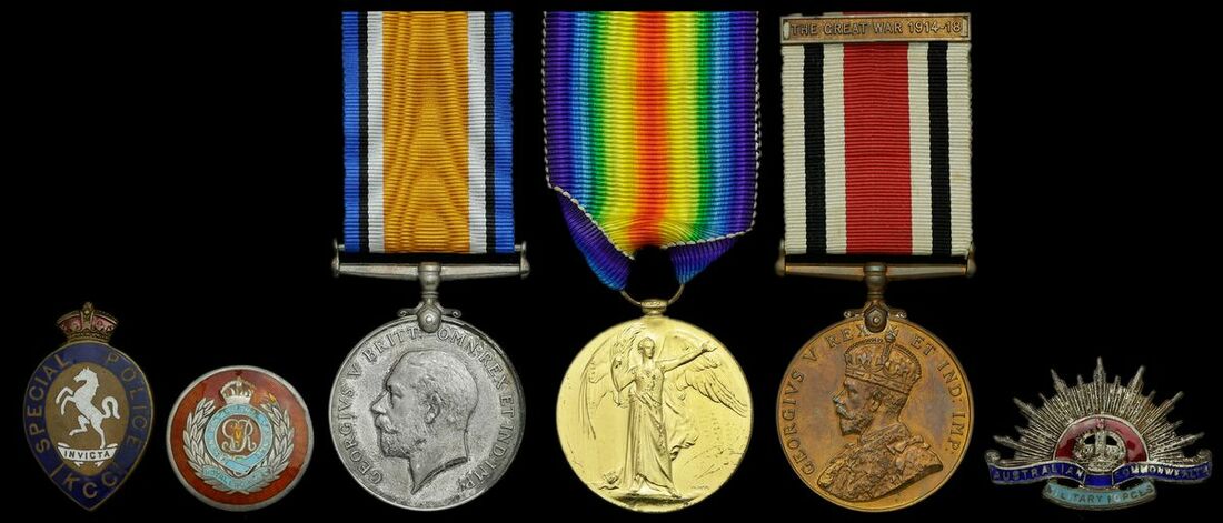 Walter D. Hayden is entitled to a Pair only and lived at 65 Runcorn Road, Margate, Kent; sold together with boxes for the Medals, Kent County Constabulary Special Police lapel Badge and sweetheart badges for the Royal Engineers and Australian Imperial Force.