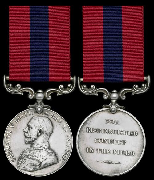D.C.M. London Gazette 18 February 1919. The citation followed on 10 January 1920: