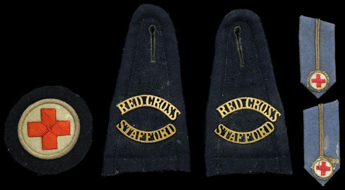 A collection of Red Cross medals, badges and buttons