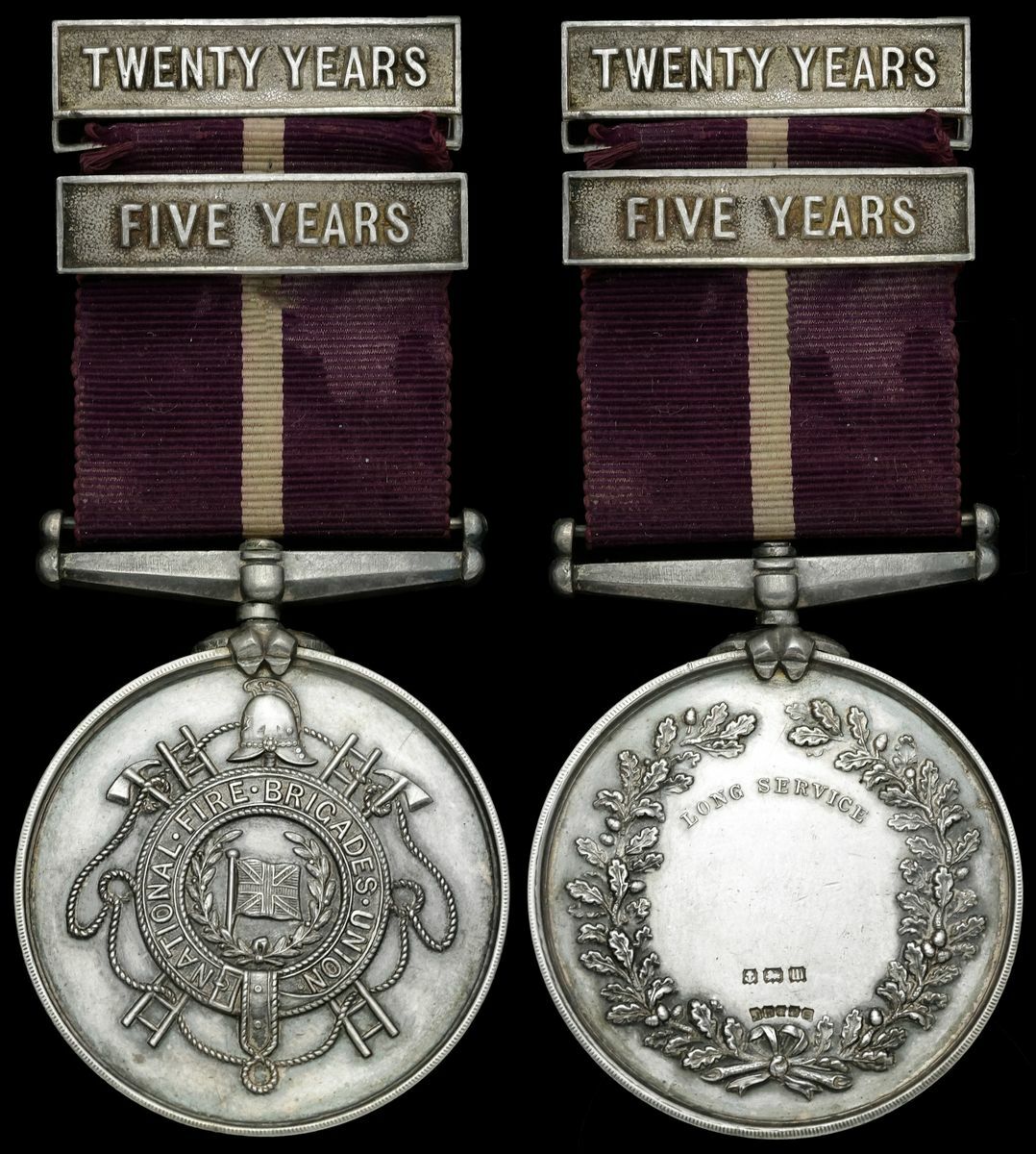 National Fire Brigades Union Long Service Medal, 2 clasps, Five Years, Twenty Years, silver (hallmarks for Birmingham 1911), numbered '809', in fitted case of issue, extremely fine
