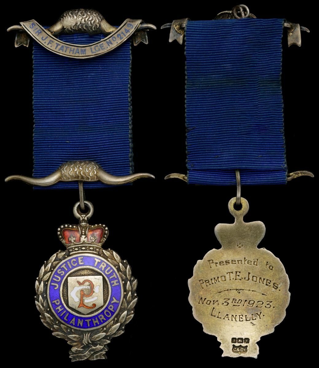 Royal Antediluvian Order of Buffaloes Medal, Sir J. F. Tatham Lodge (presented to Primo T. F. Jones Nove. 3rd 1923 Llanelly), silver and enamel, hallmarks for Birmingham 1923, good very fine