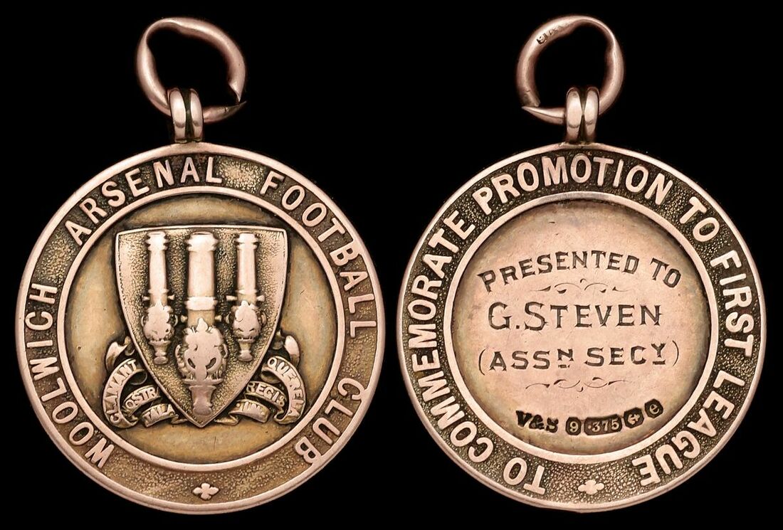 Woolwich Arsenal Football Club, gold (9 carat) Medal, the reverse engraved 'Presented to G. Steven Assn Secy', polished, very fine