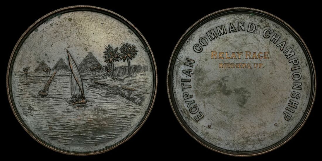 Egyptian Command Championship, bronze Medal, 77mm, Pyramids and Dhows to the obverse, Egyptian Command Championship to reverse, (Relay Race Runners Up); together with another unmarked version good very fine (2)