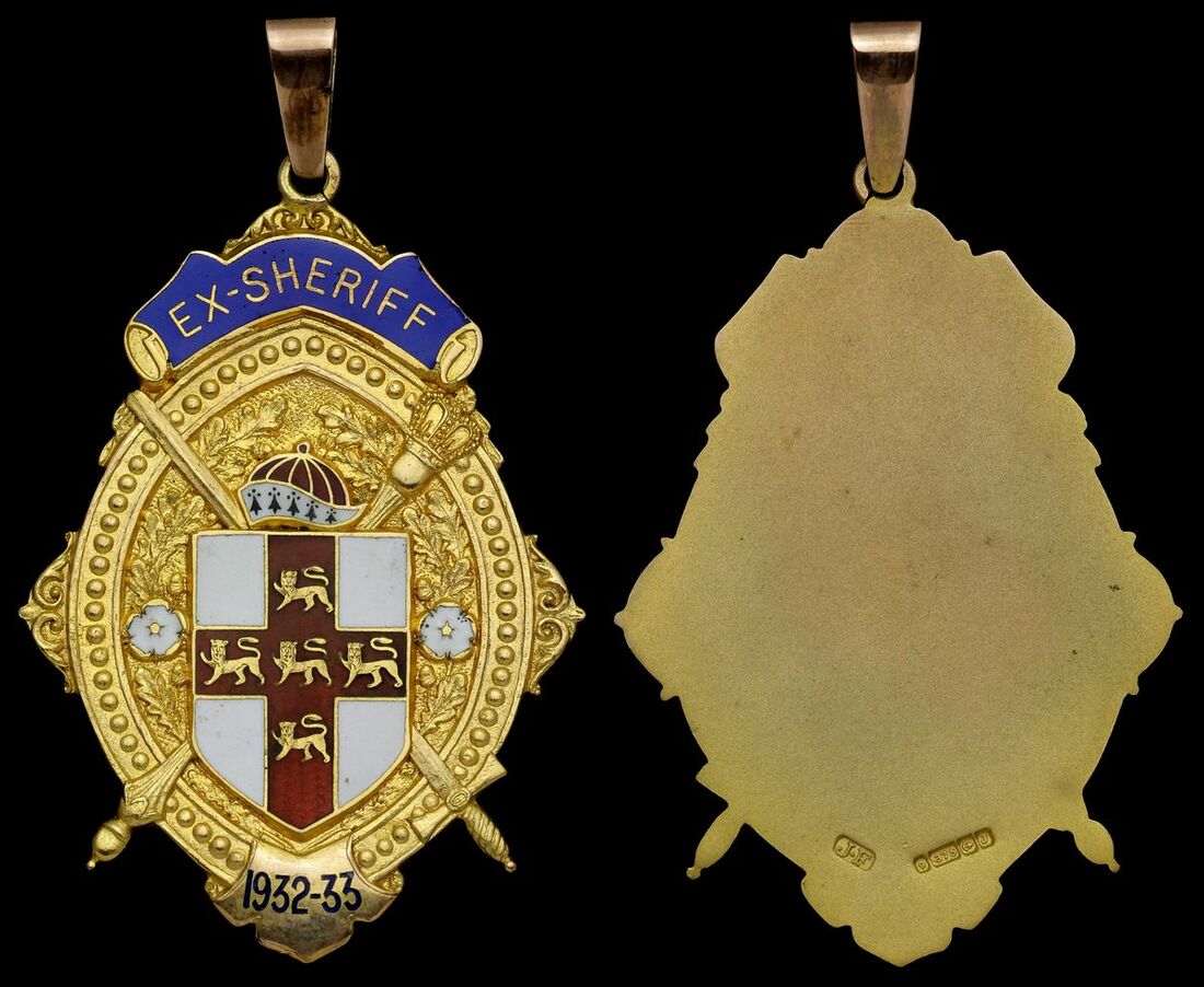 Sherriff of City of York, Ex-Sheriff's Badge, dated '1932-33', by J. Fattorini, hallmarks for 9 carat gold (18.9g), good very fine, in its A. E. Hopper, York case of issue